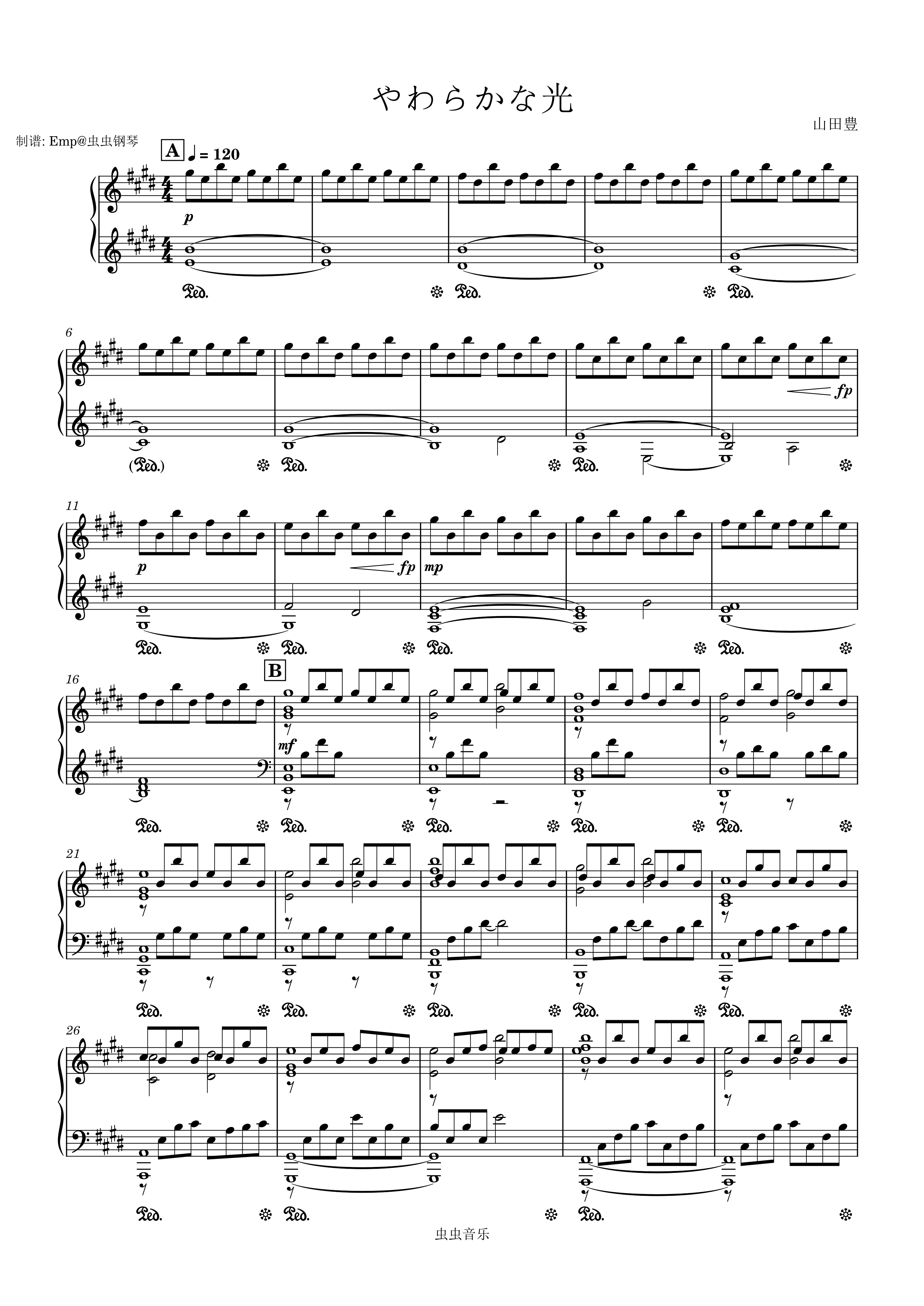 钢琴谱:やわらかな光-山田豊 钢琴改编分享
