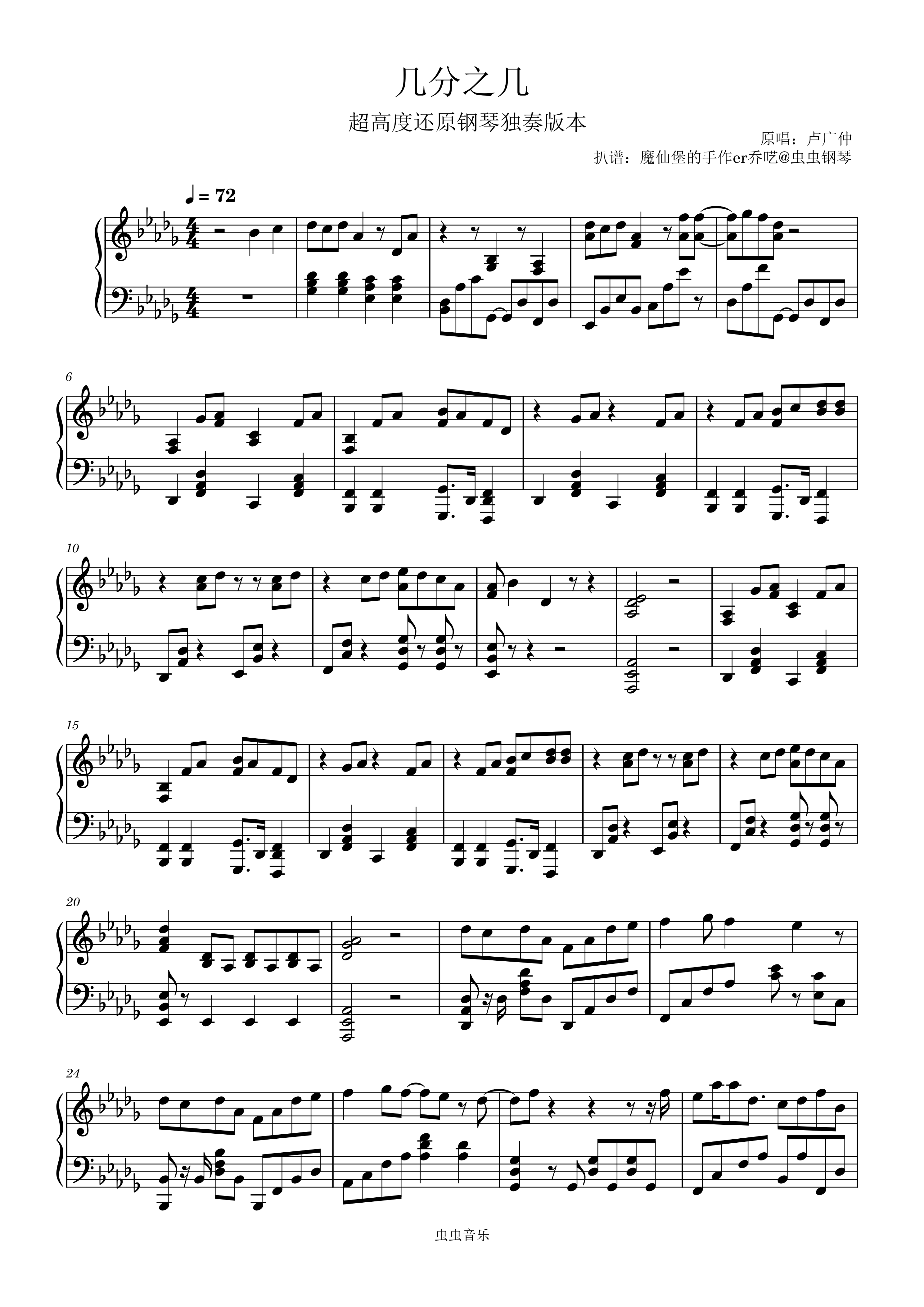 • 几分之几钢琴简谱 C调 数字双手 卢广仲
