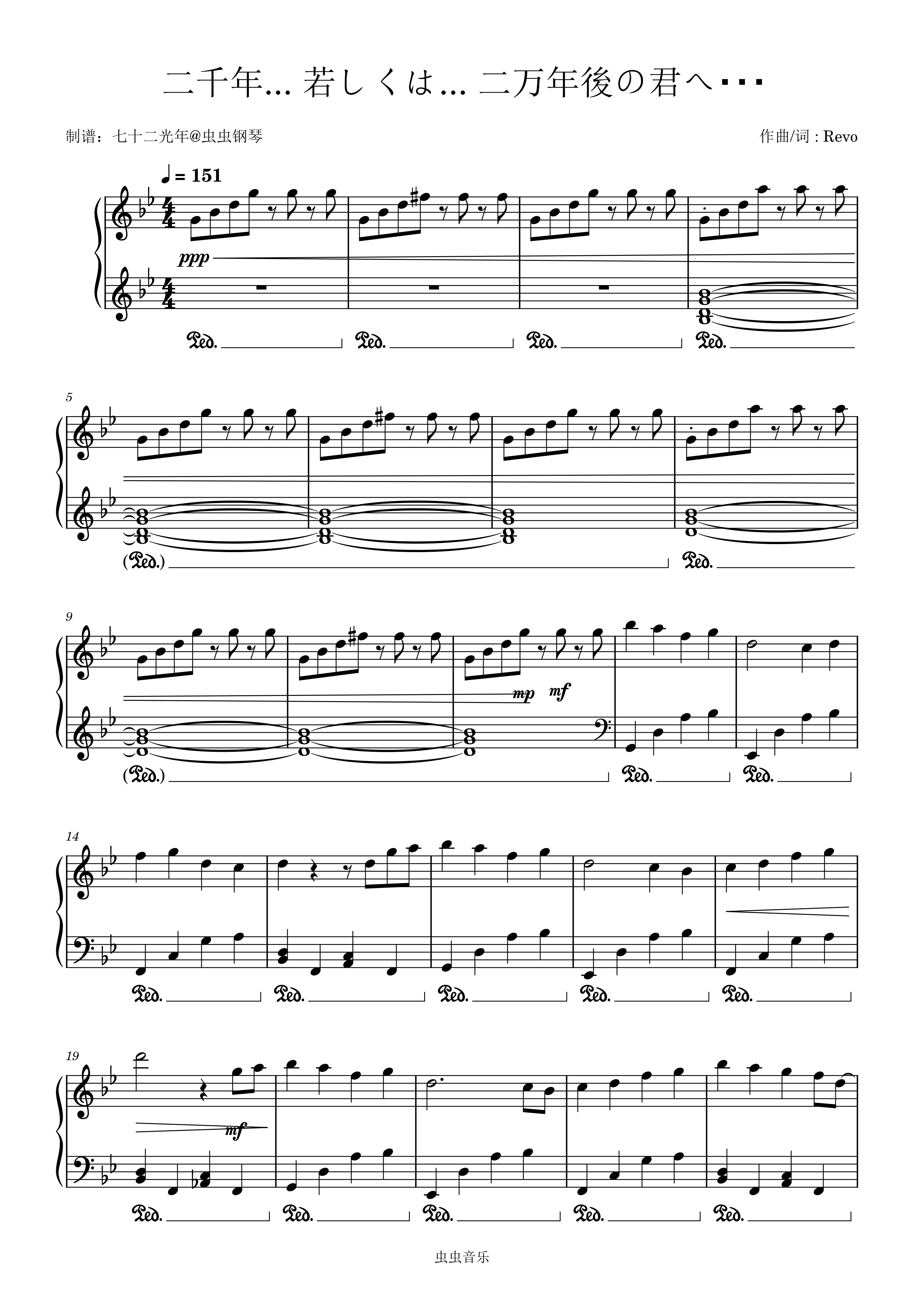 二千年... 若しくは... 二万年後の君へ・・・钢琴简谱 数字双手 Revo