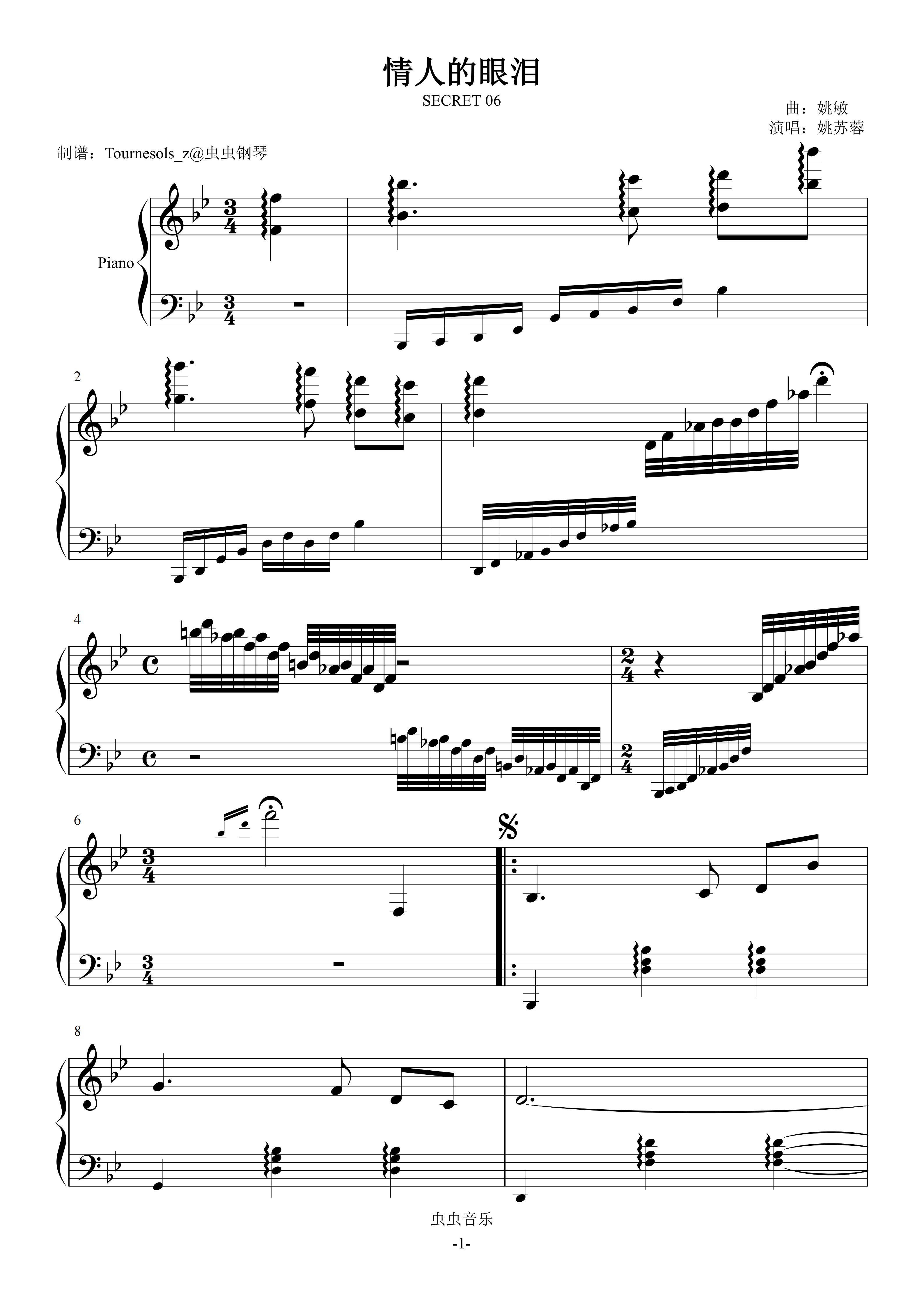 钢琴谱:情人的眼泪 (周杰伦电影《不能说的秘密》写真原谱)