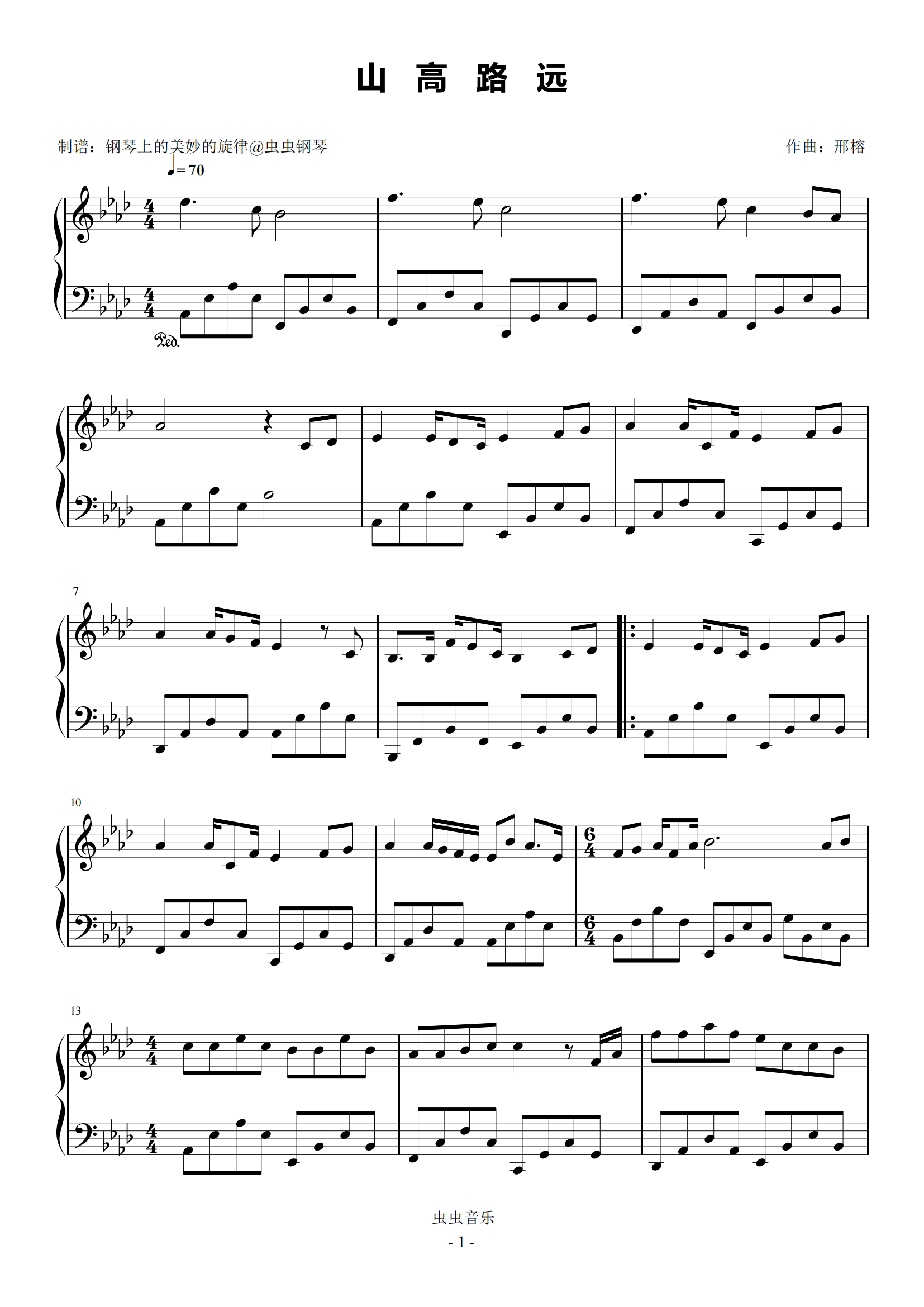 • 游山恋钢琴简谱 F调 数字双手 海伦