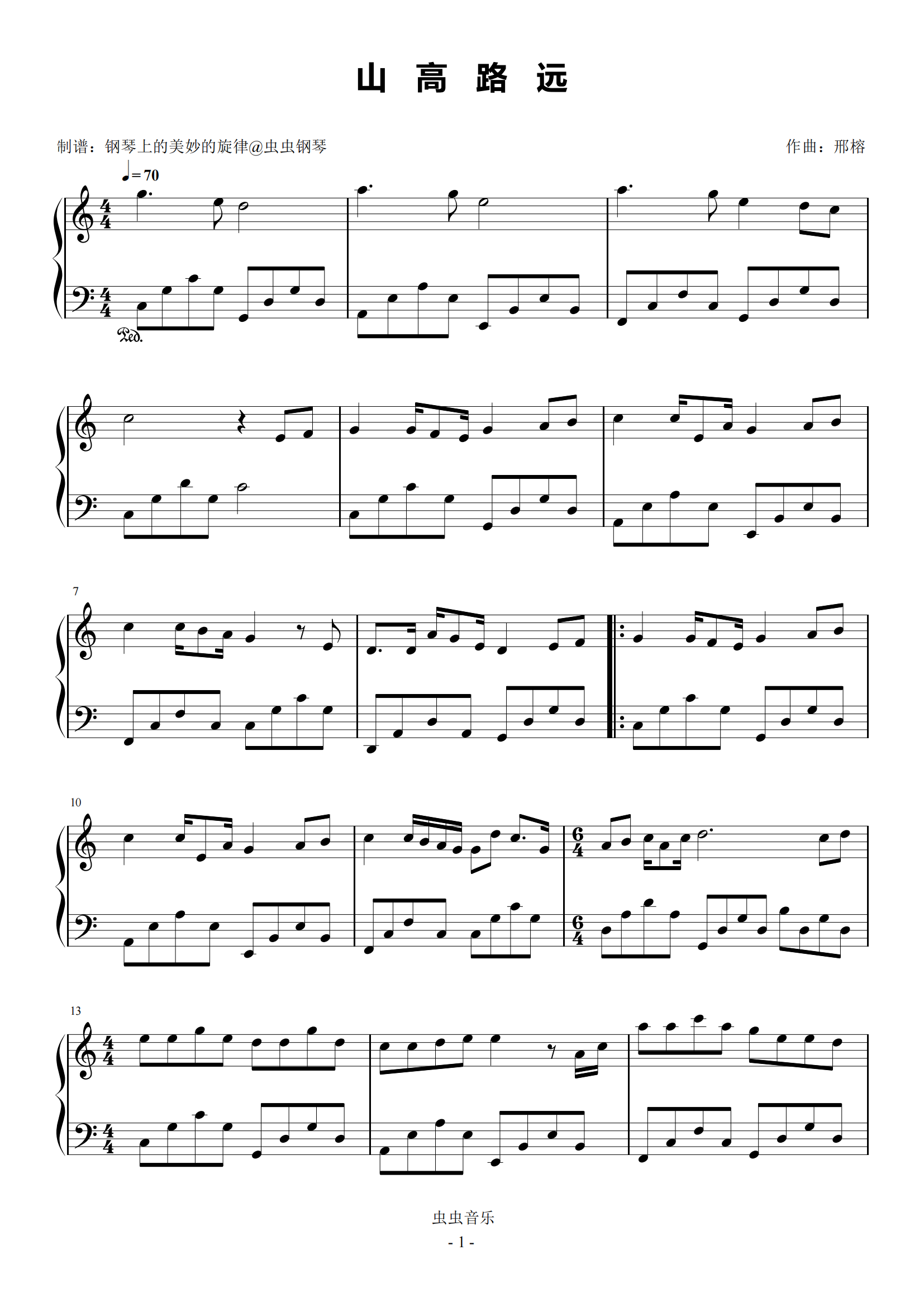 • 游山恋钢琴简谱 F调 数字双手 海伦