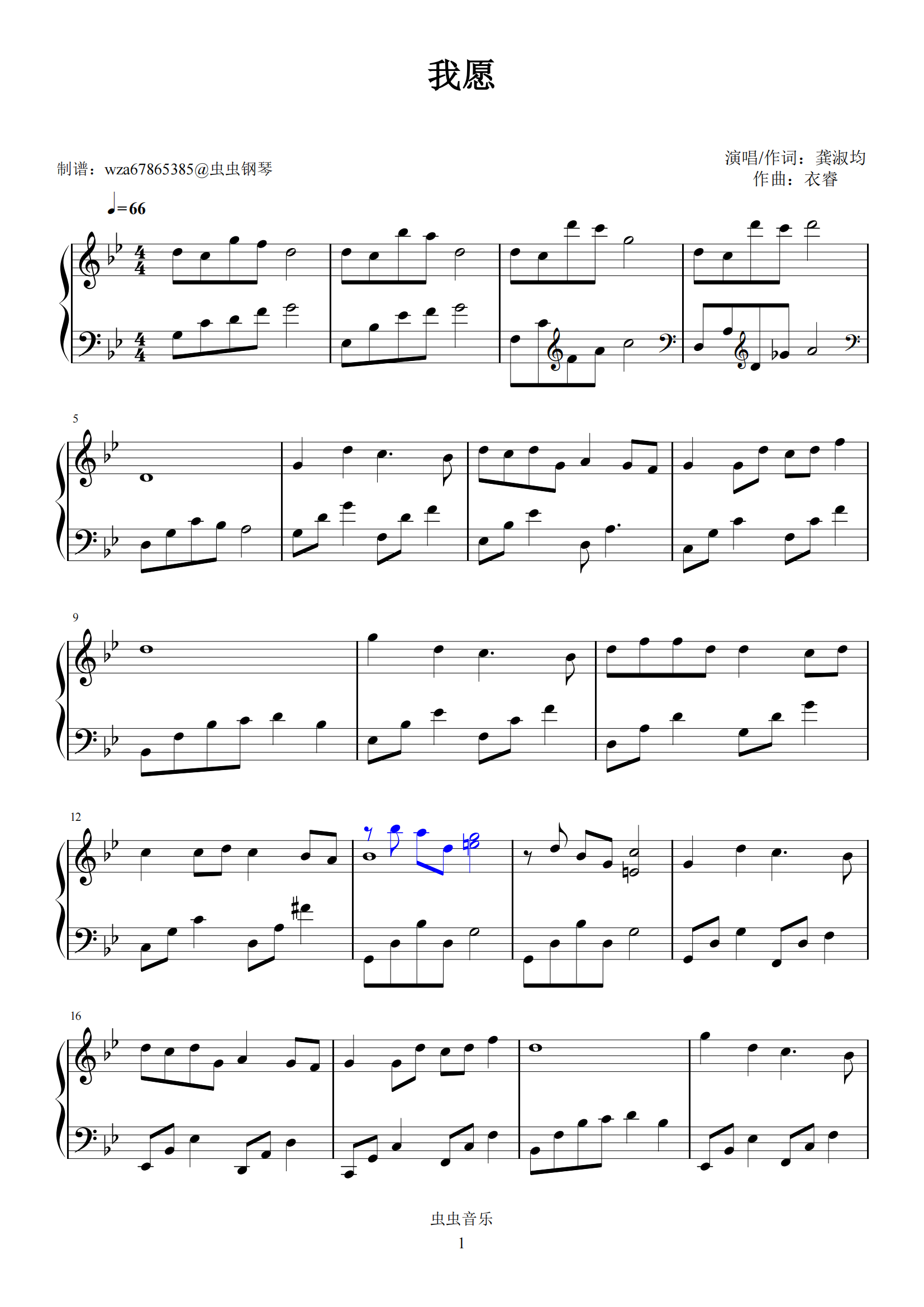 • 愿与愁钢琴简谱 G调 数字双手 小寒