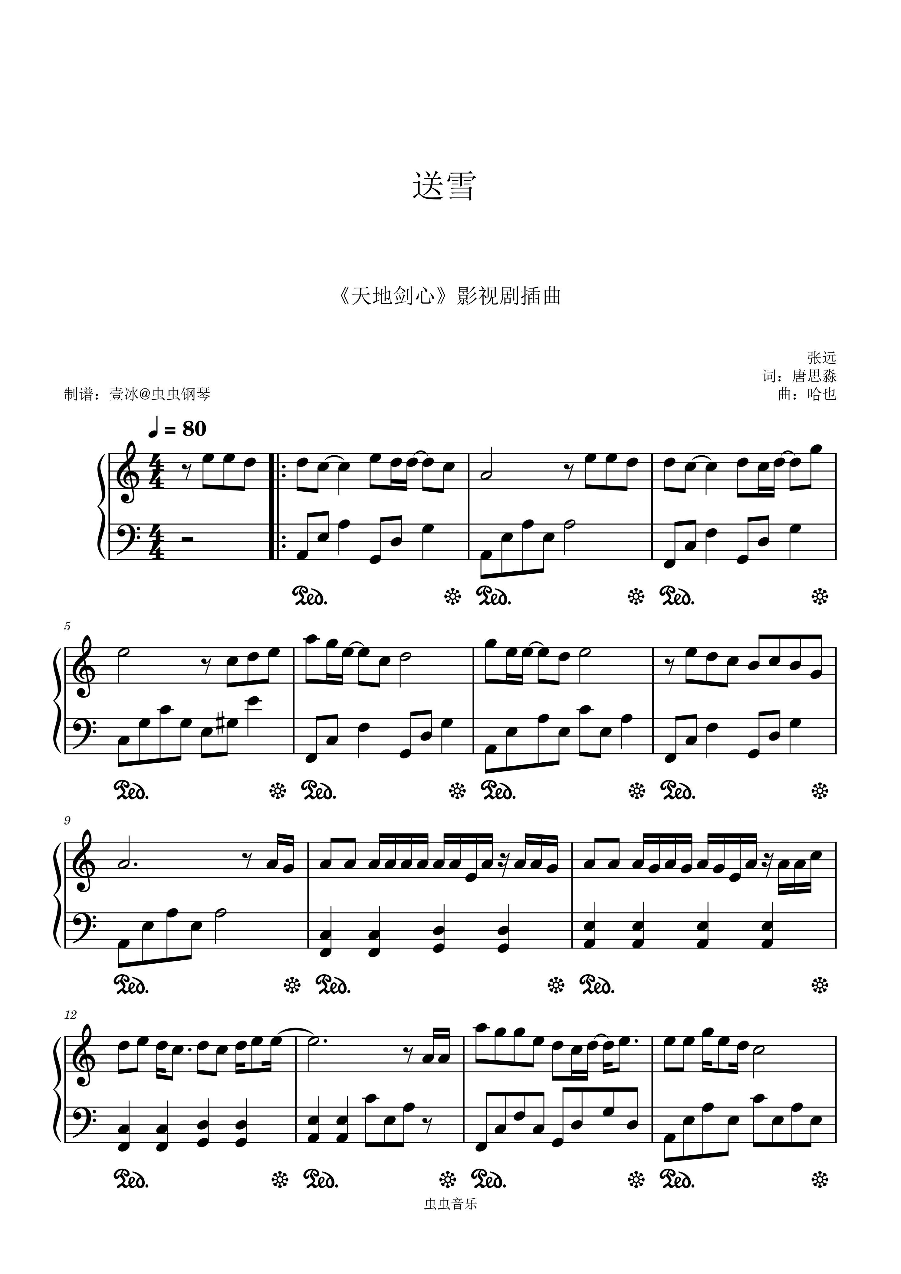 钢琴谱:送雪 (《天地剑心》影视剧插曲) - C调