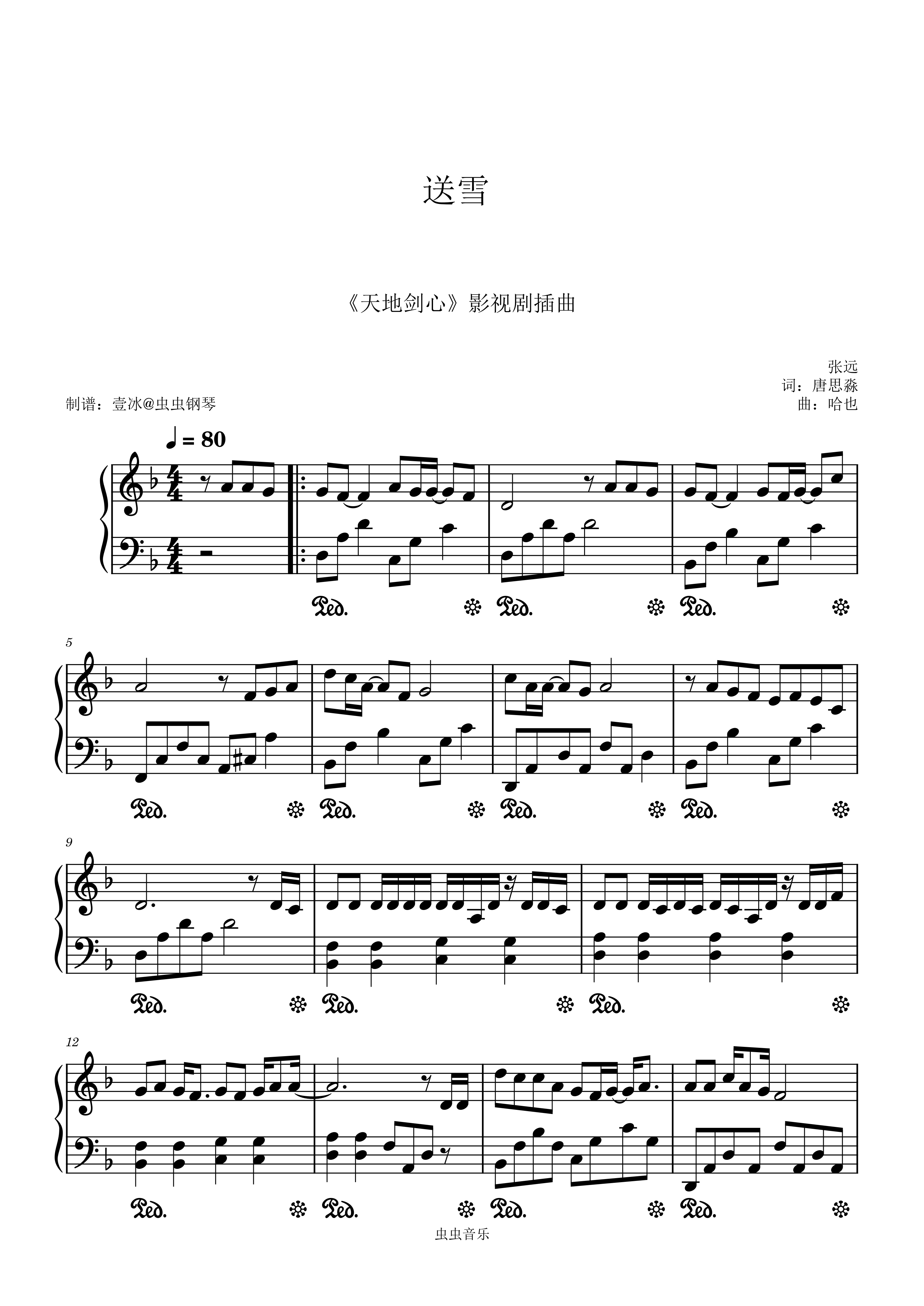 钢琴谱:送雪 (《天地剑心》影视剧插曲) - 原调