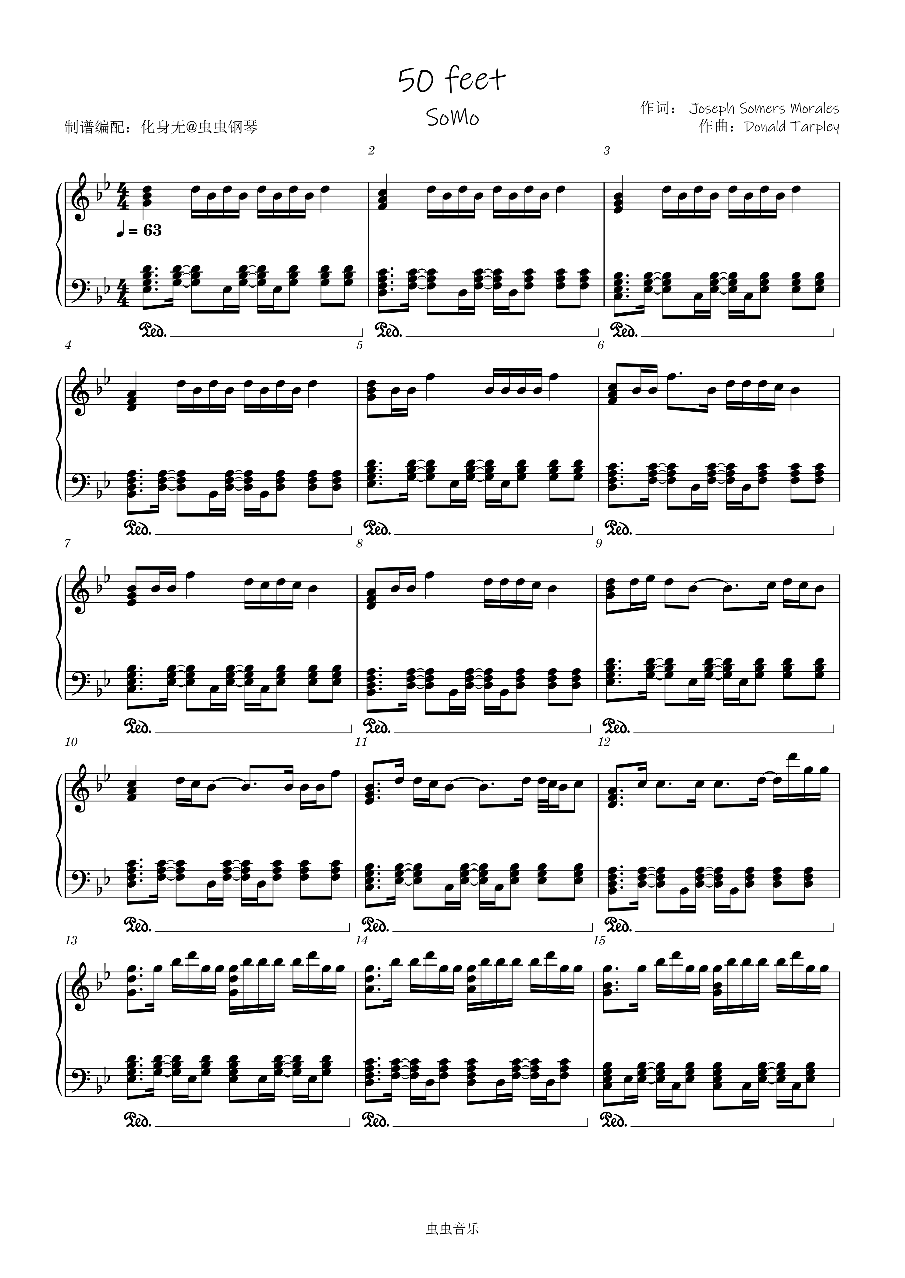 50 Feet钢琴简谱 数字双手 Joseph Somers Morales