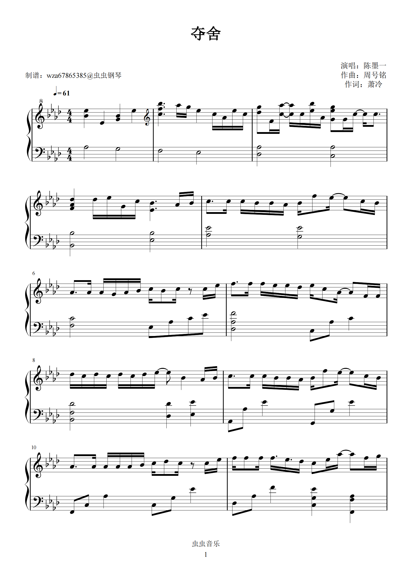 • 不舍 (斗罗大陆)钢琴简谱 G调 数字双手 曹德智/付茂华
