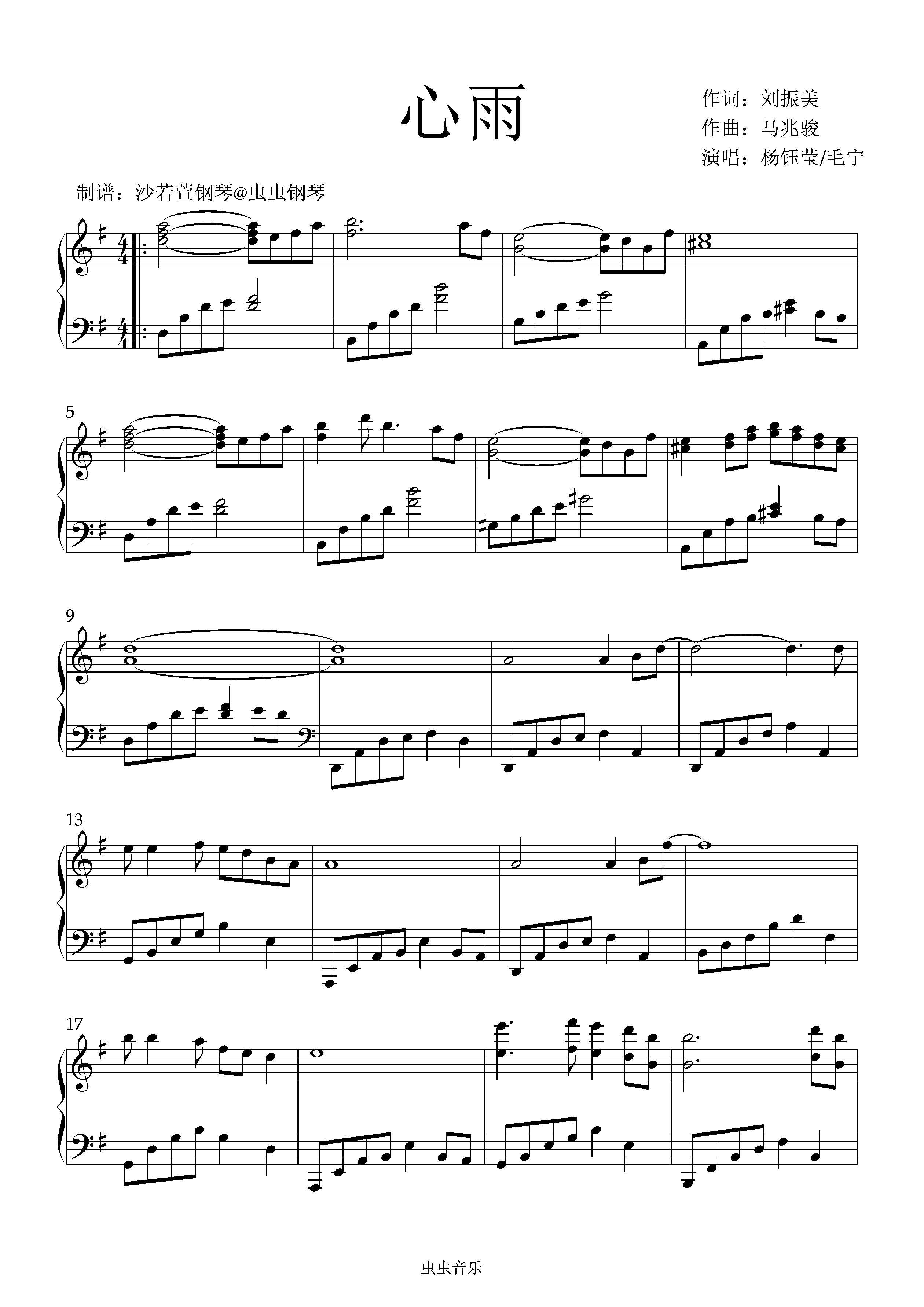 • 心雨钢琴简谱 C调 数字双手 刘振美