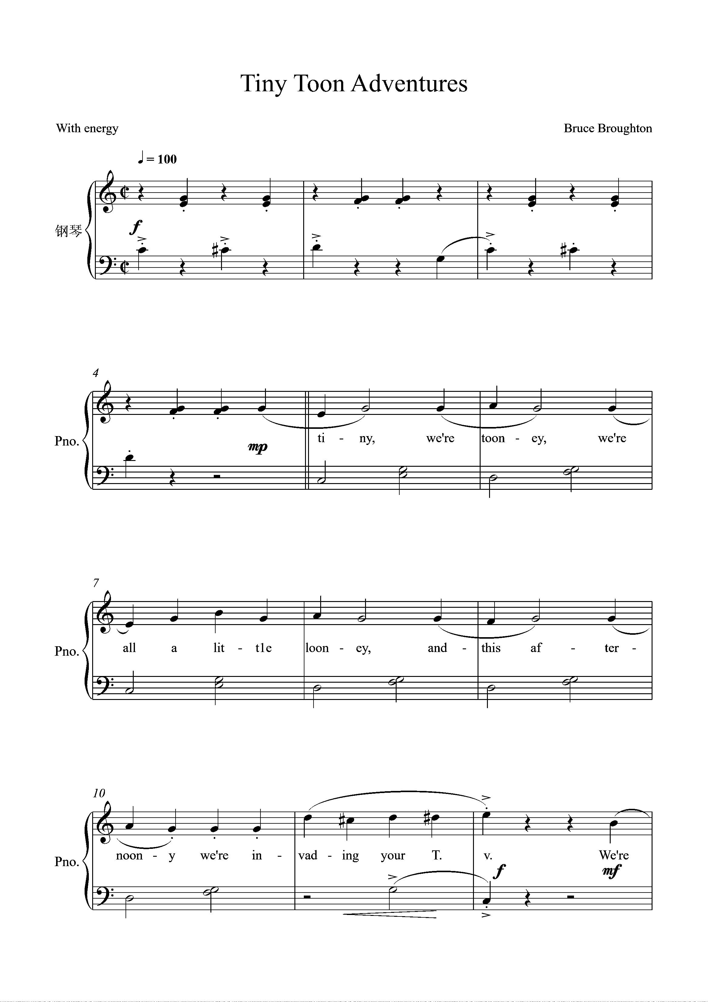 钢琴谱:3.Tiny Toon Adventrs(Theme Song)