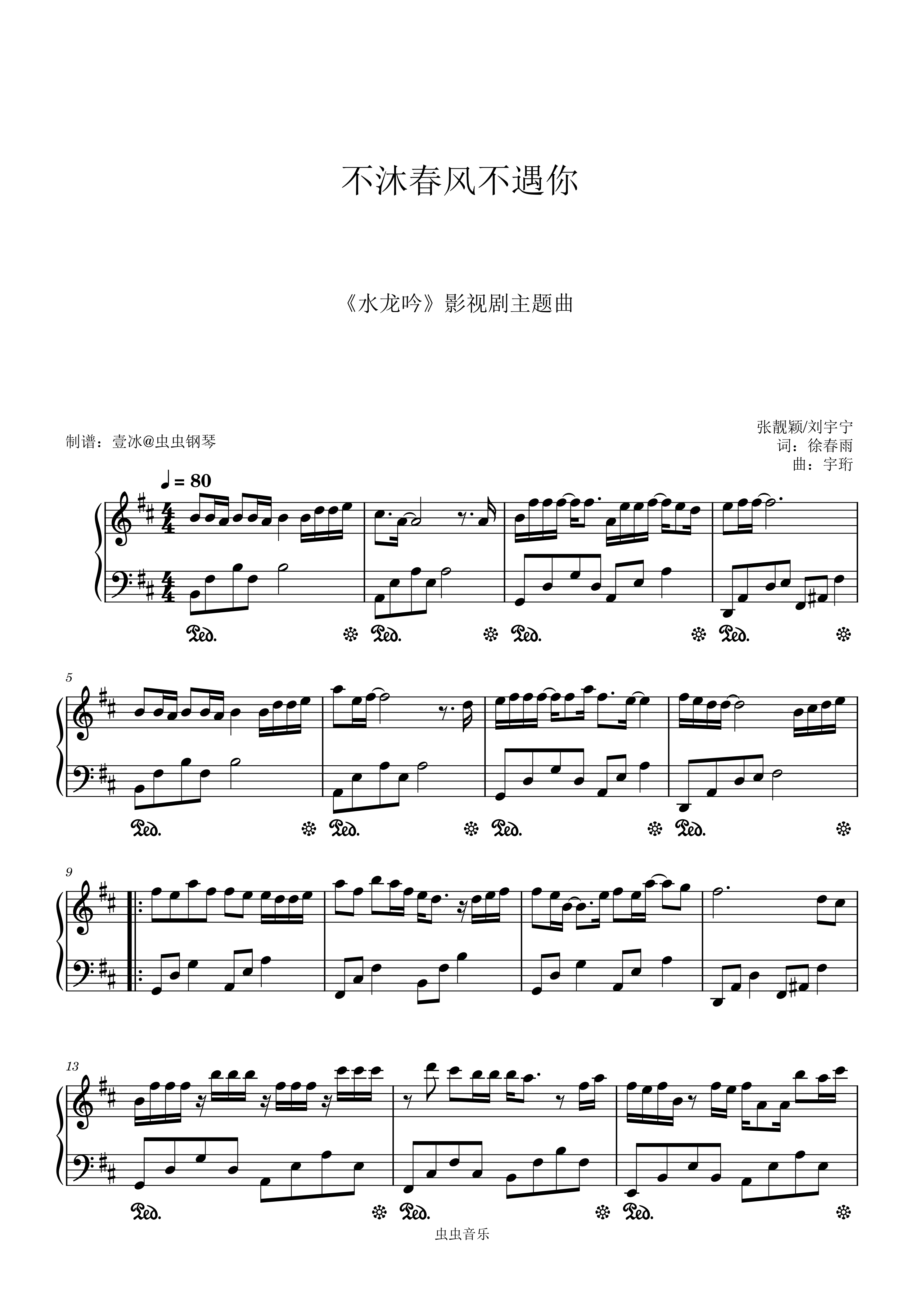 钢琴谱:不沐春风不遇你 (《水龙吟》影视剧主题曲) - 原调