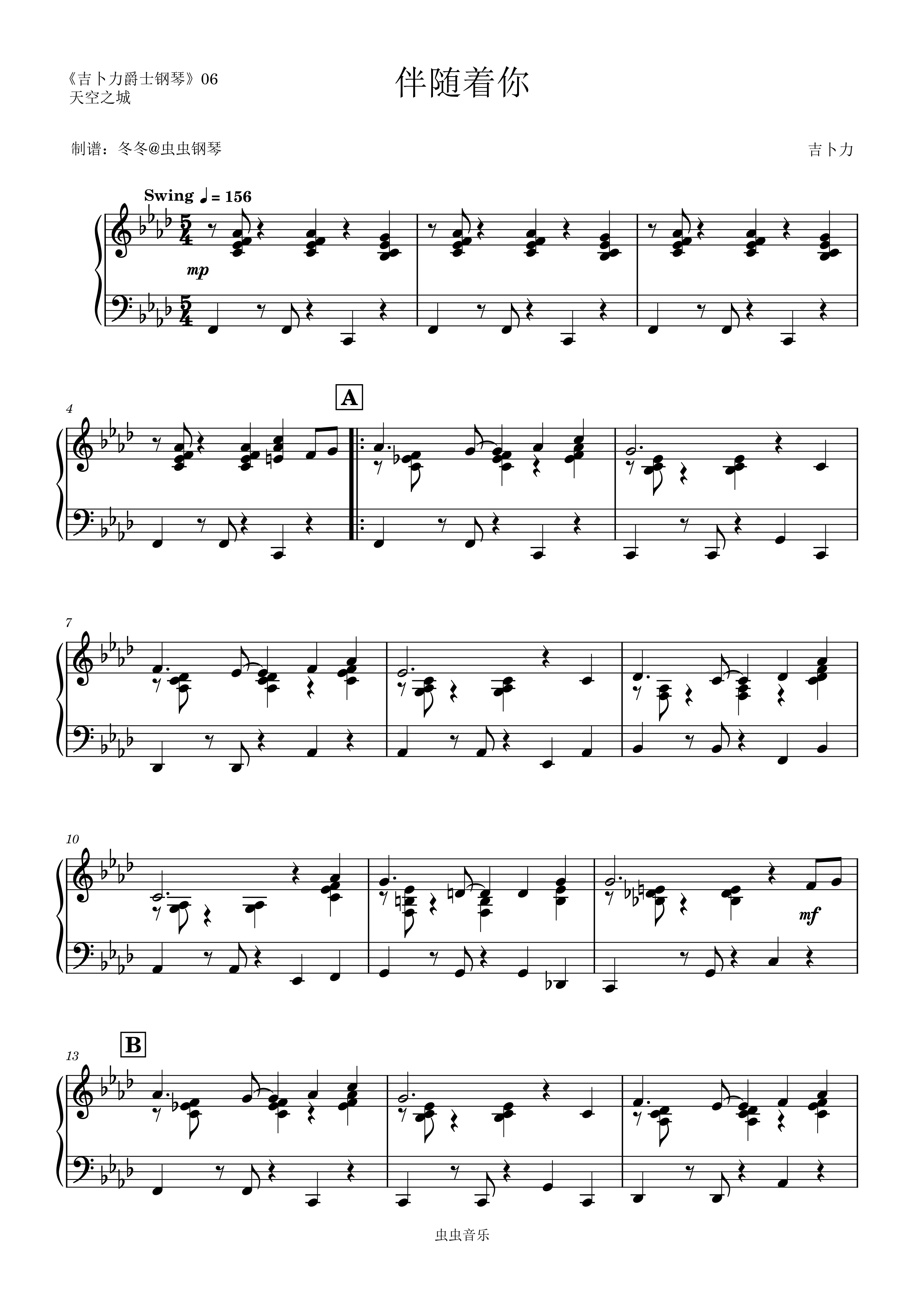 • 伴随着你(天空之城)钢琴简谱 C调 数字双手