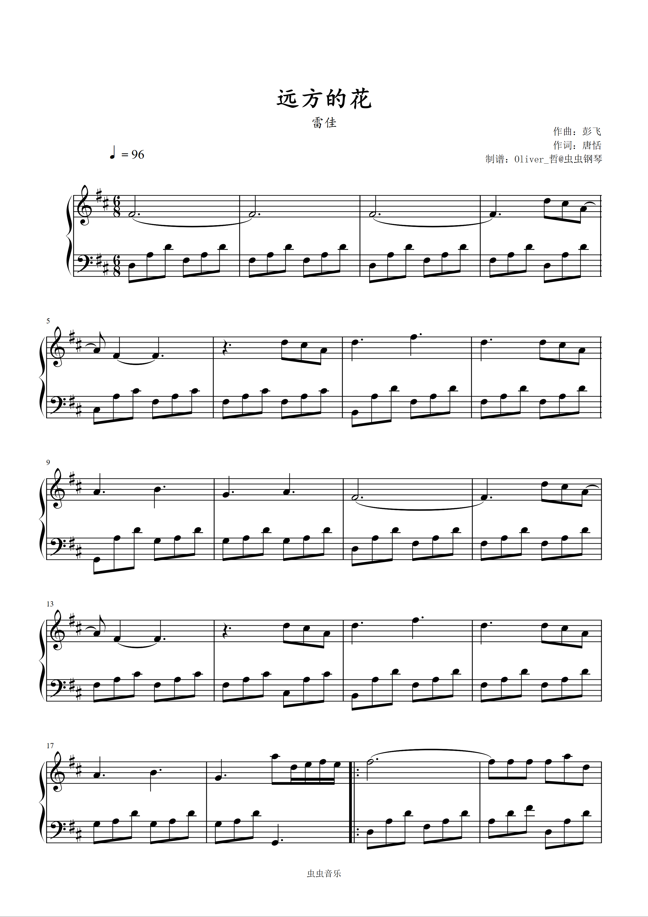 钢琴谱:远方的花-雷佳 原调精编简易版(电视剧《玫瑰的故事》主题曲、片尾曲)