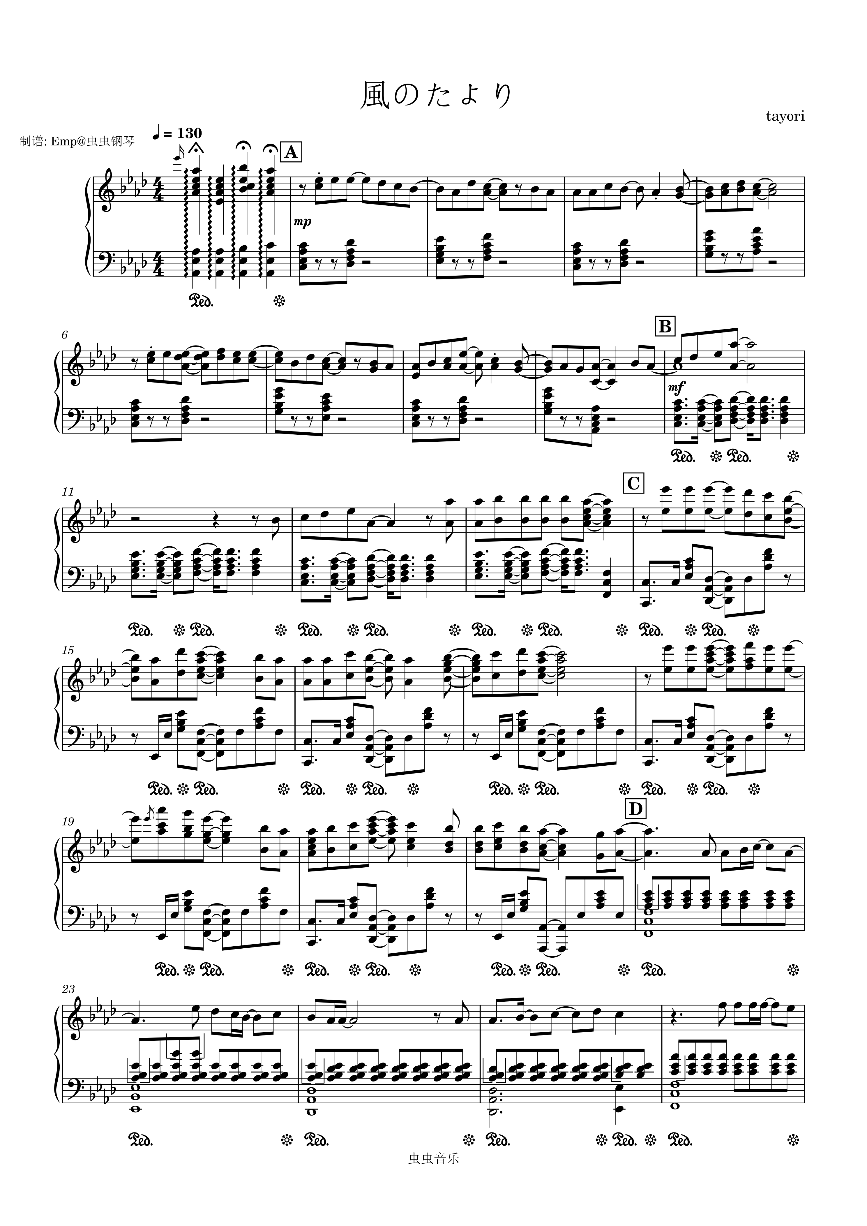 钢琴谱:風のたより-tayori 钢琴改编