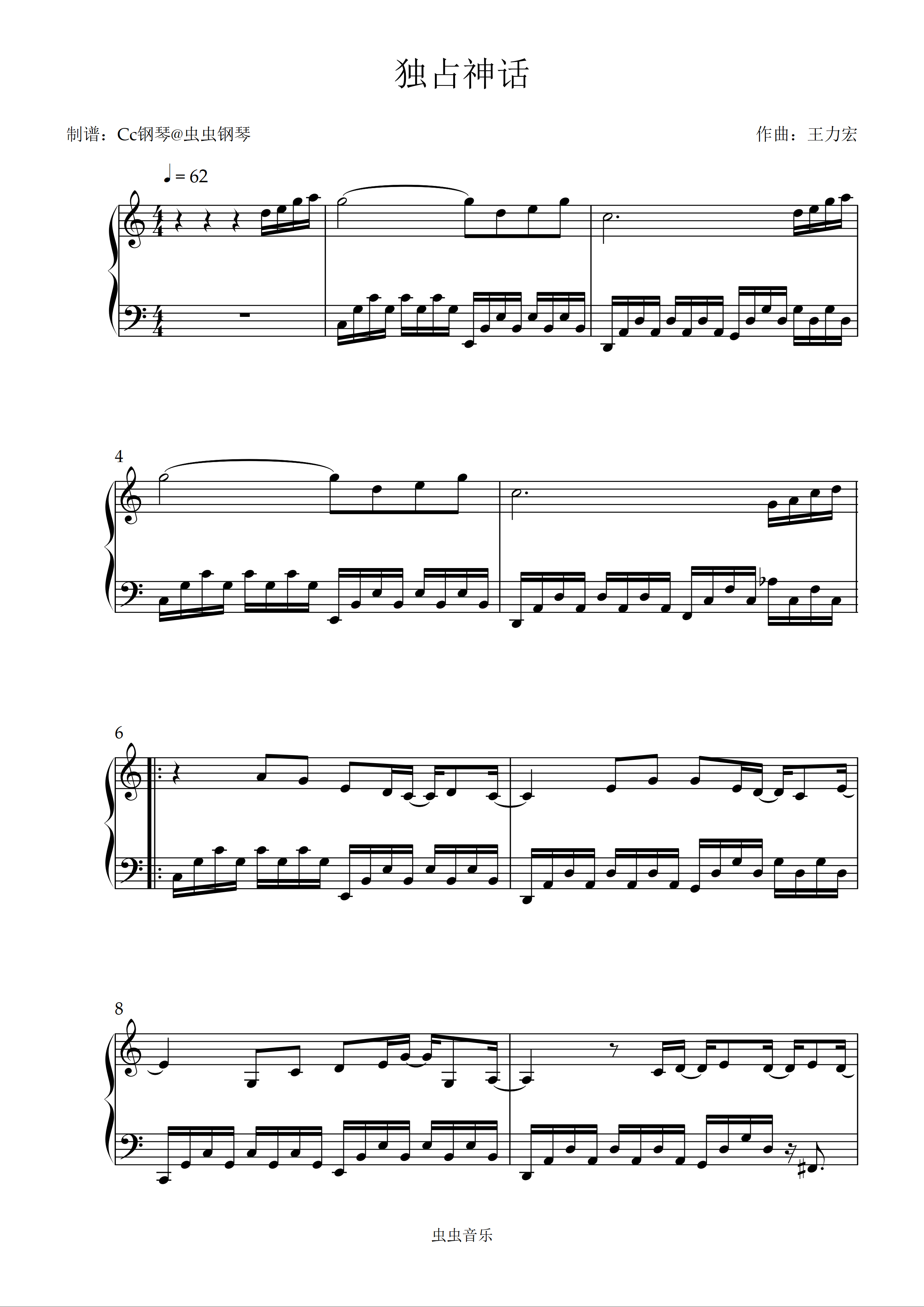 • 美丽的神话钢琴简谱 ab调 数字双手 王中言/严丹丹