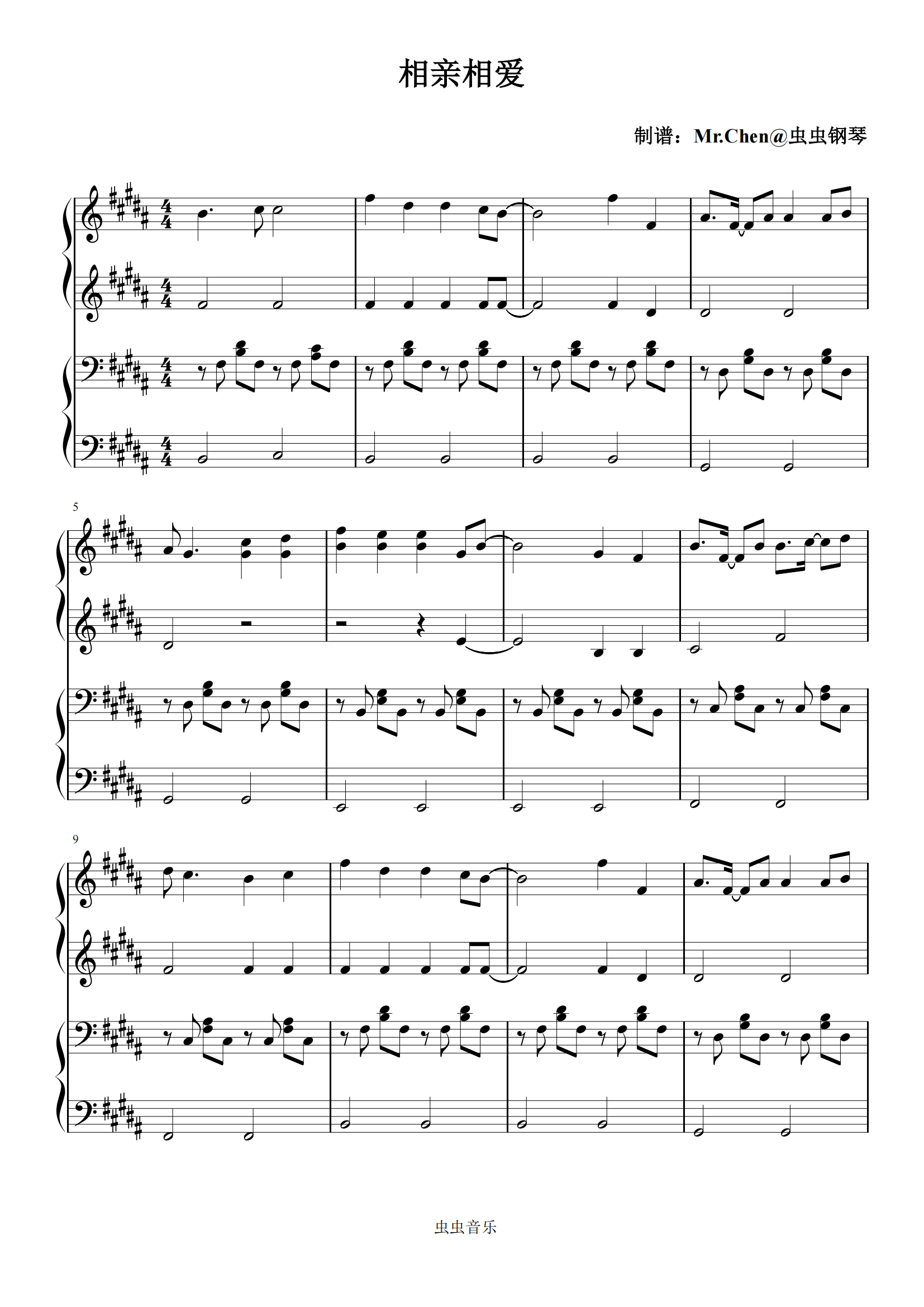钢琴谱:相亲相爱 (四手联弹)原调 - 群星