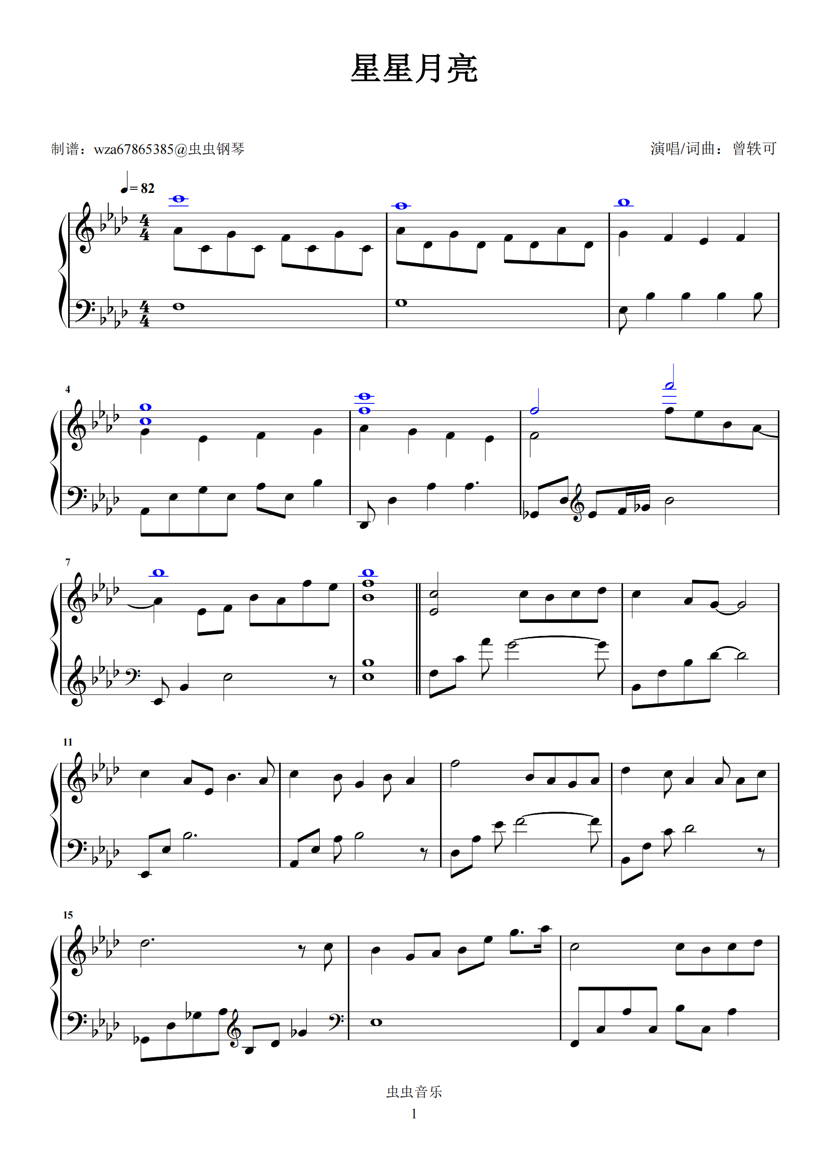 • 小星星钢琴简谱 B调 数字双手 Jane Taylor/王雨然