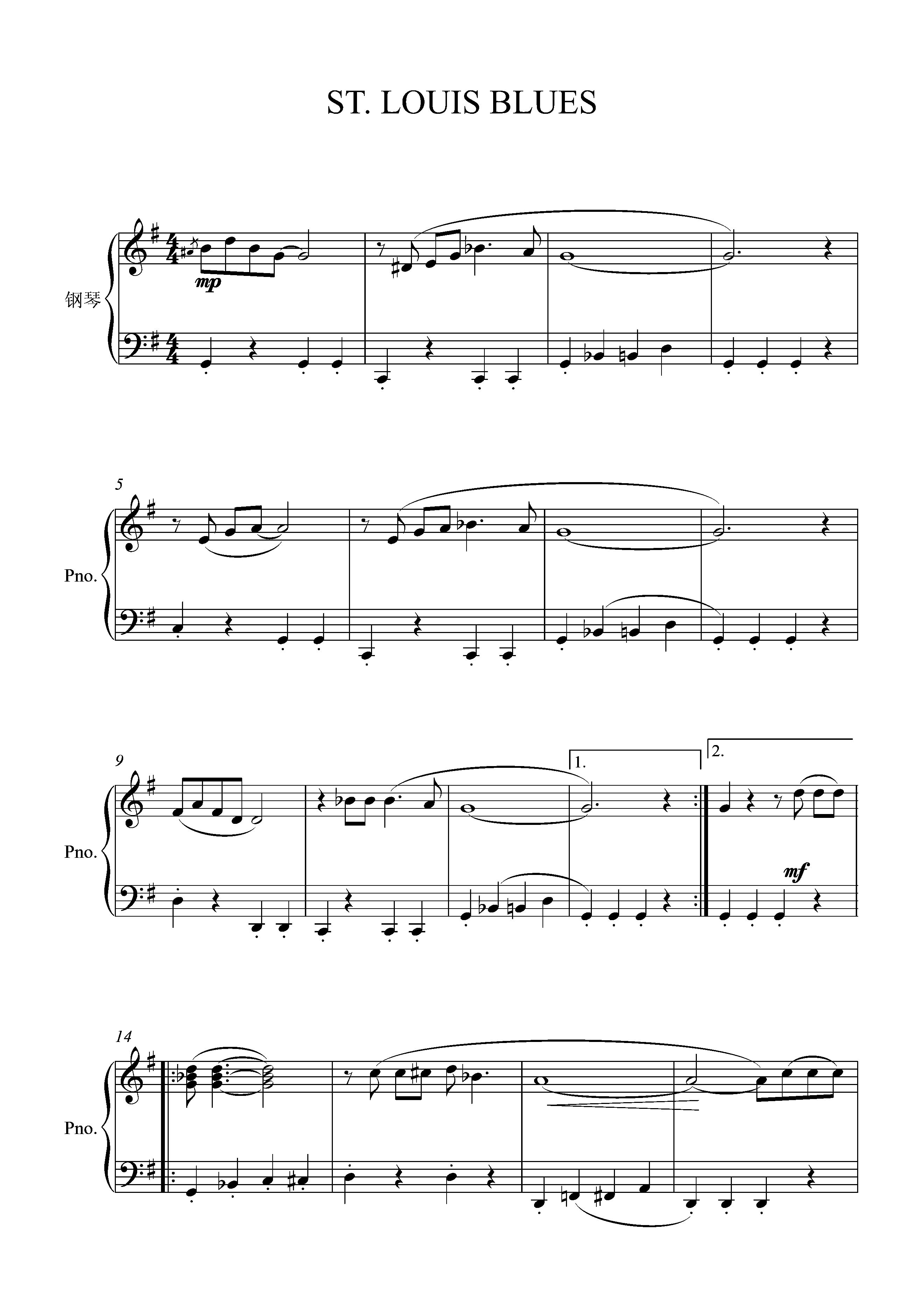 ST. LOUIS BLUES钢琴简谱 数字双手