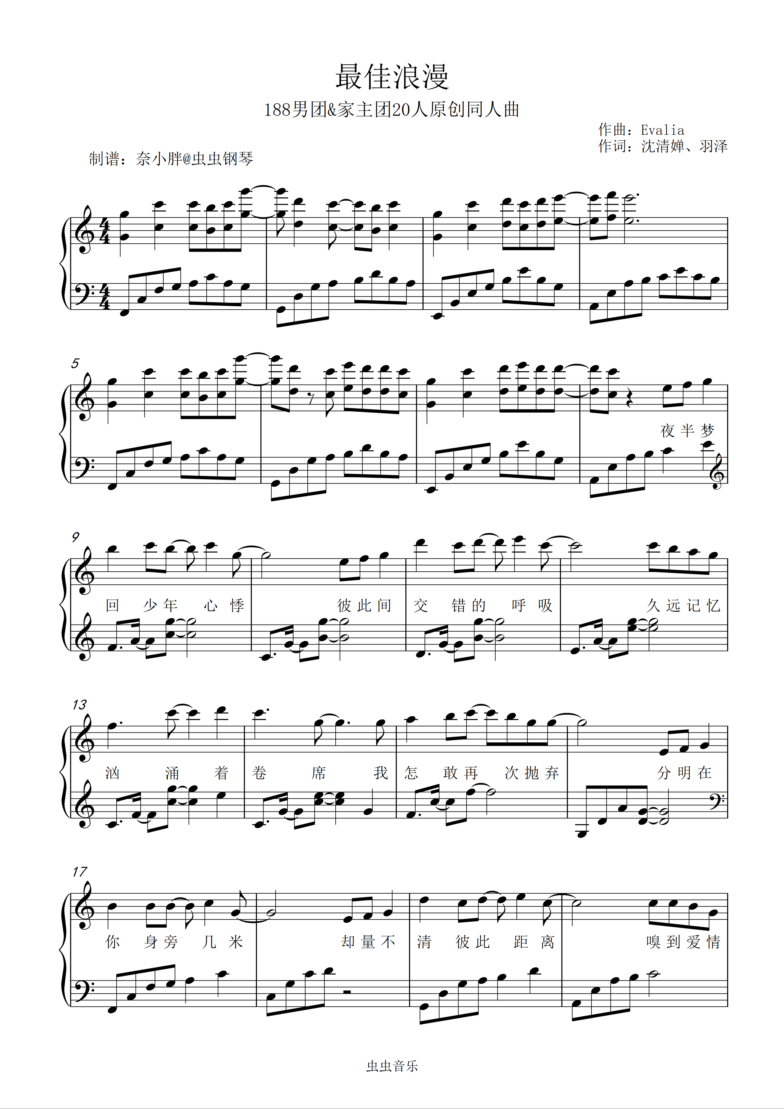 钢琴谱:最佳浪漫-188男团&家主团同人去