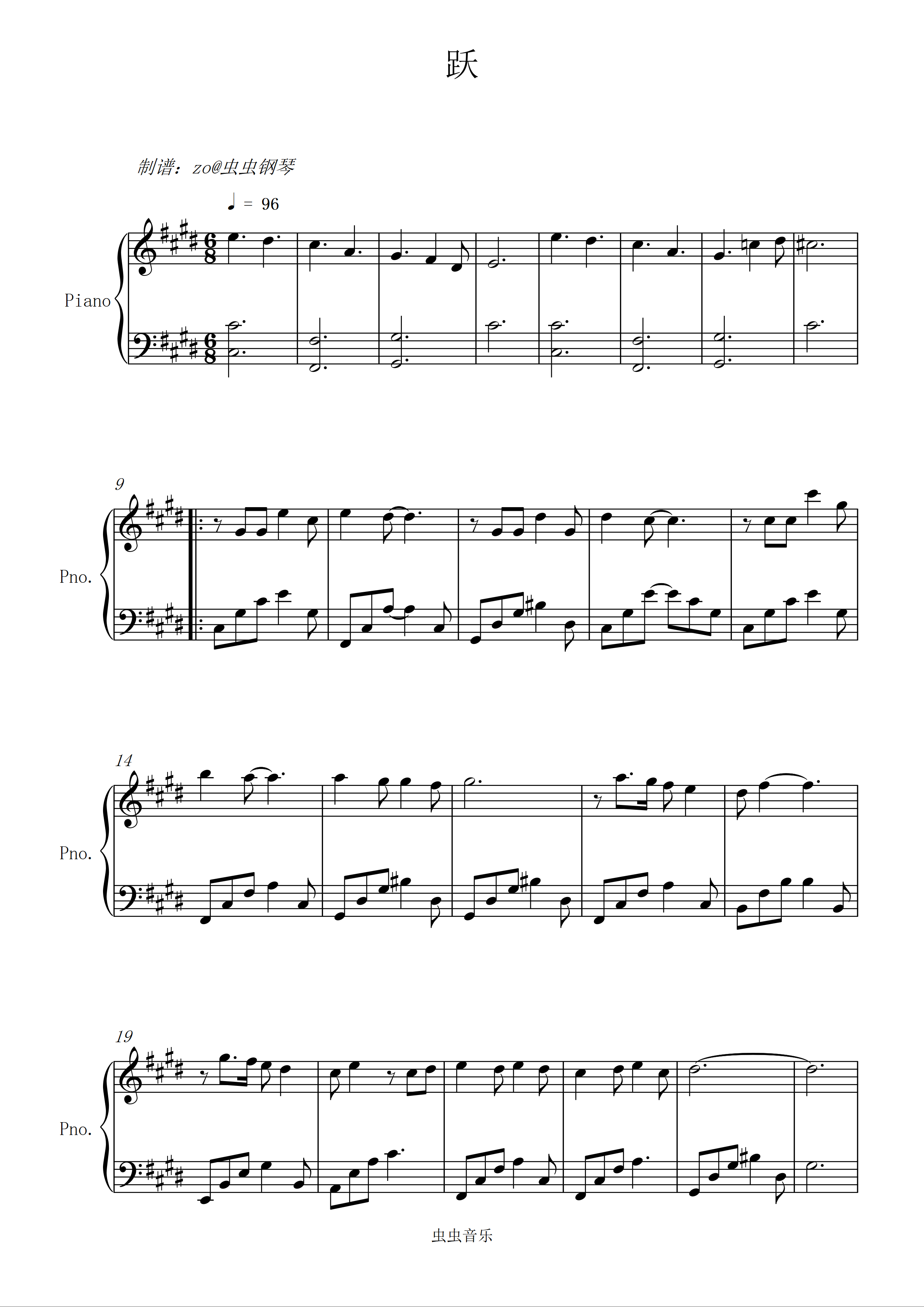 钢琴谱:跃 - 薛之谦