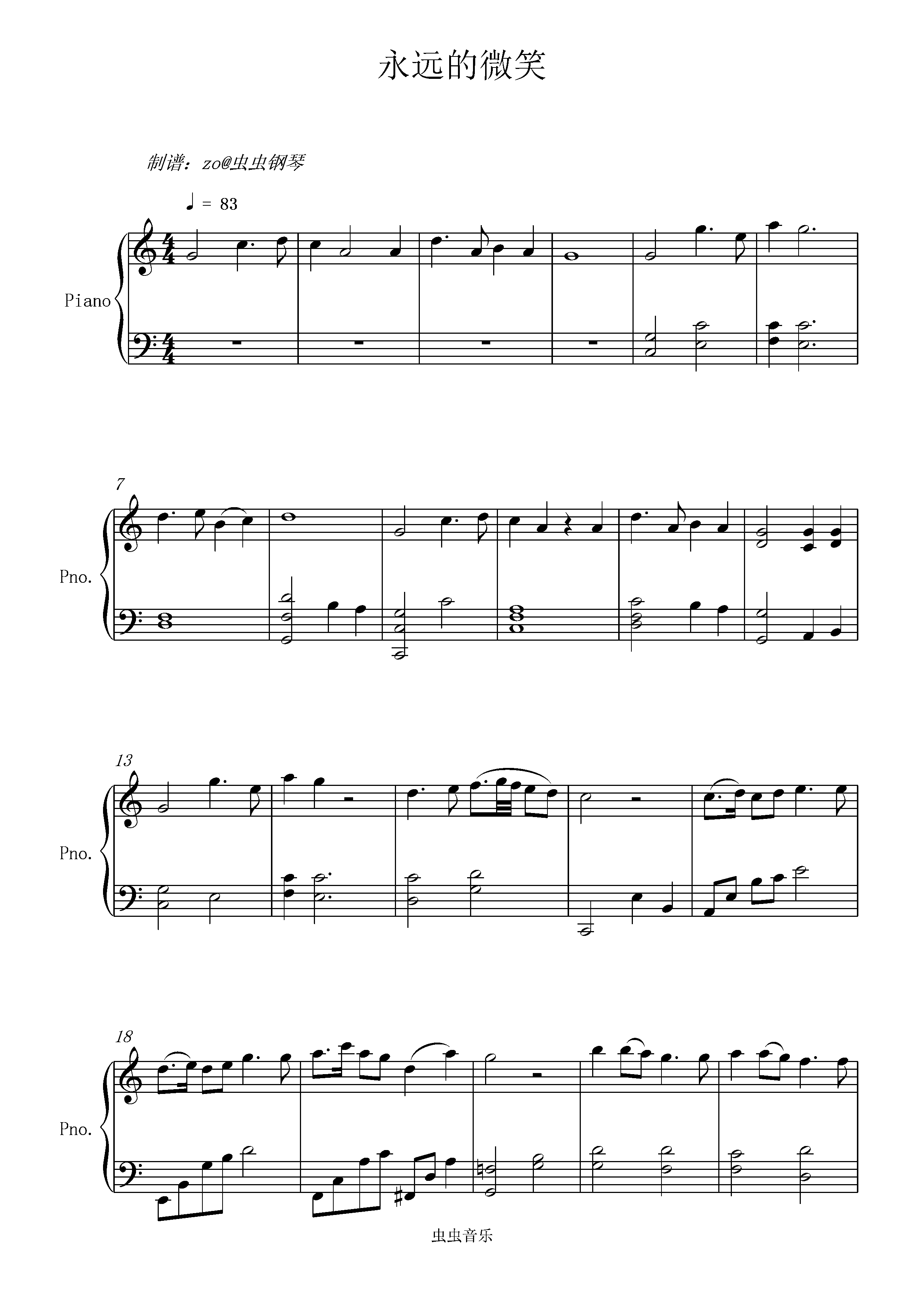 钢琴谱:永远的微笑 电影《南京照相馆》片尾曲 - 黄绮珊 / 秦四风