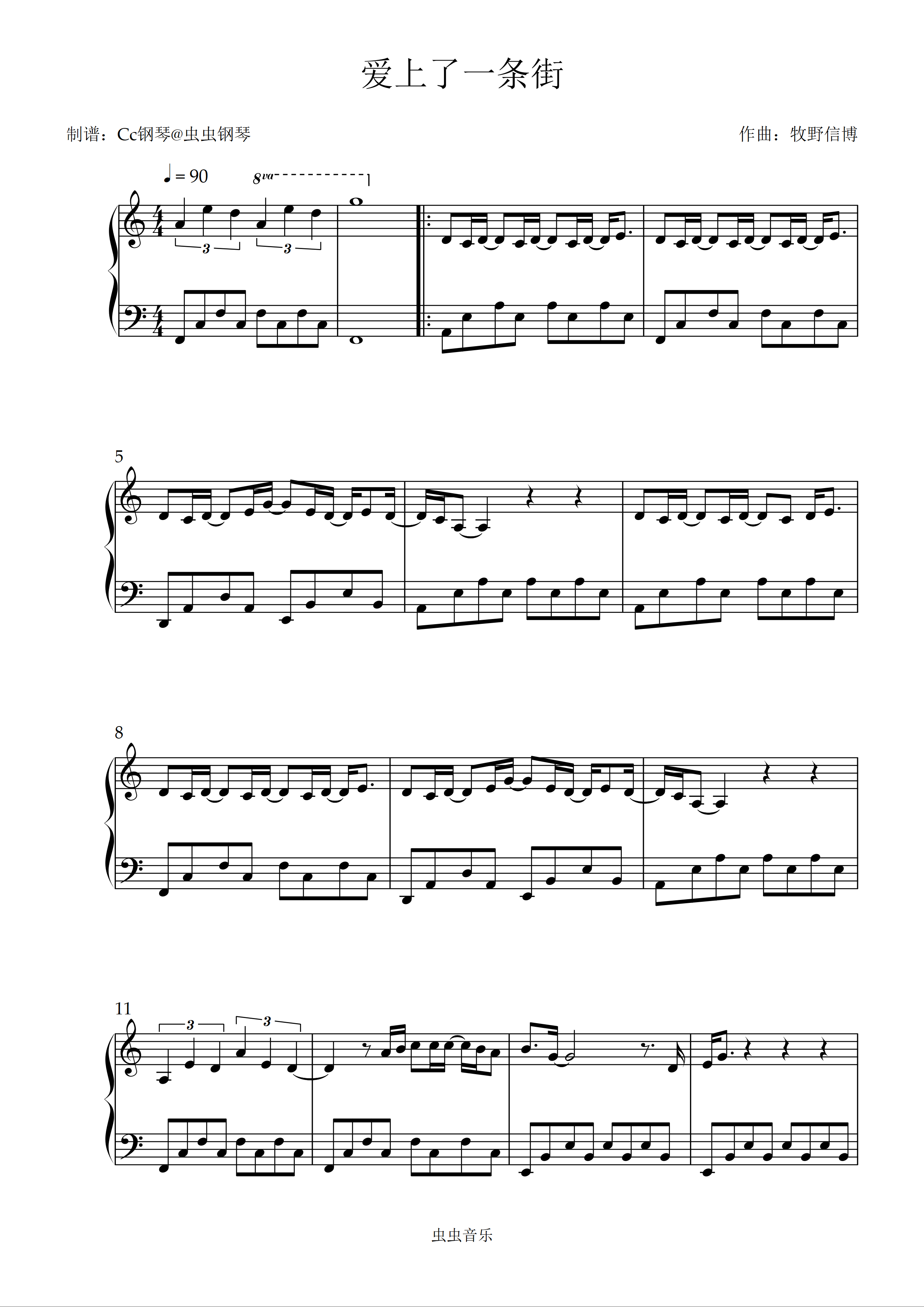 钢琴谱:爱上了一条街 C调 好听易上手