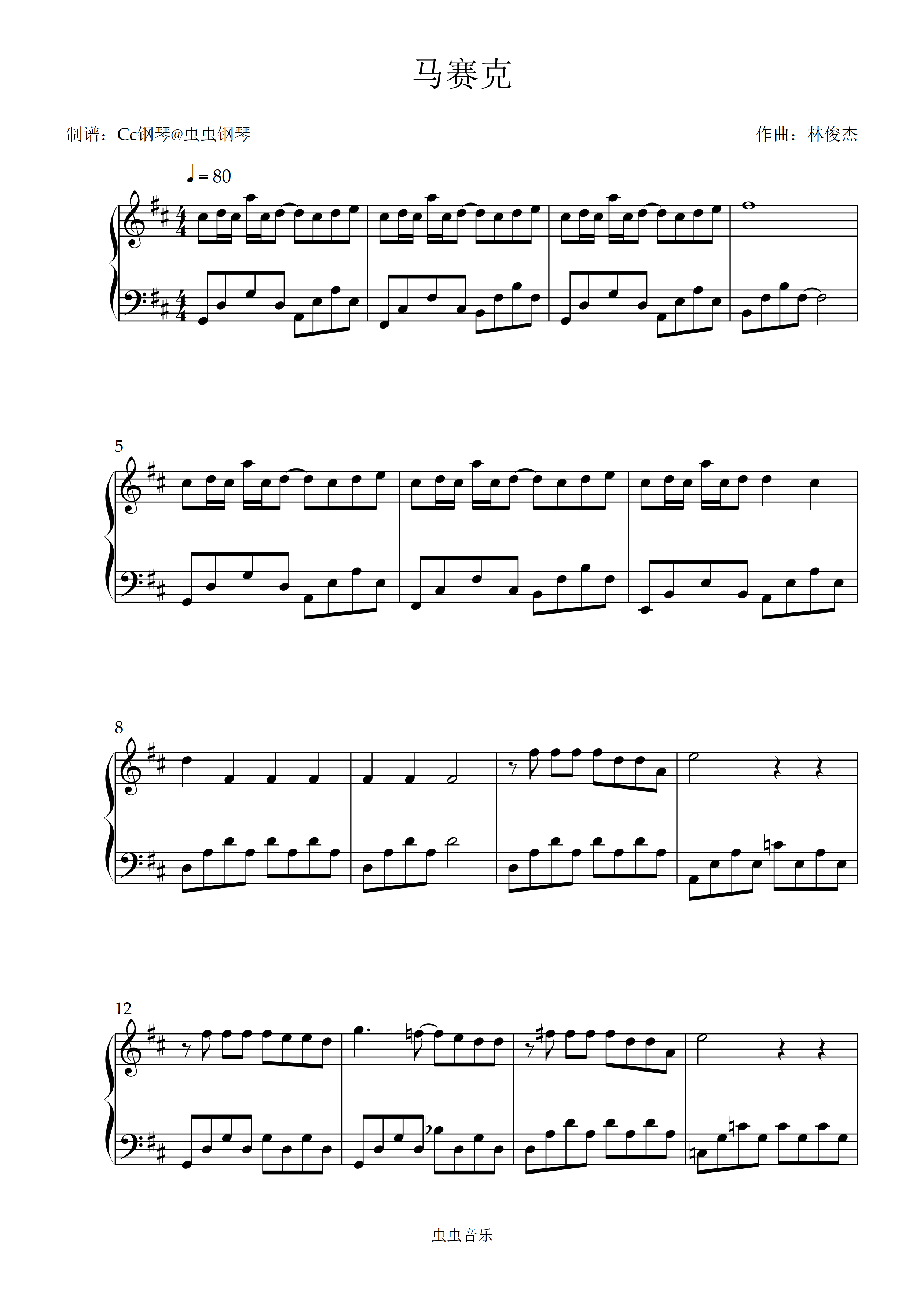 • モザイクロール钢琴简谱 C调 数字双手 DECO*27