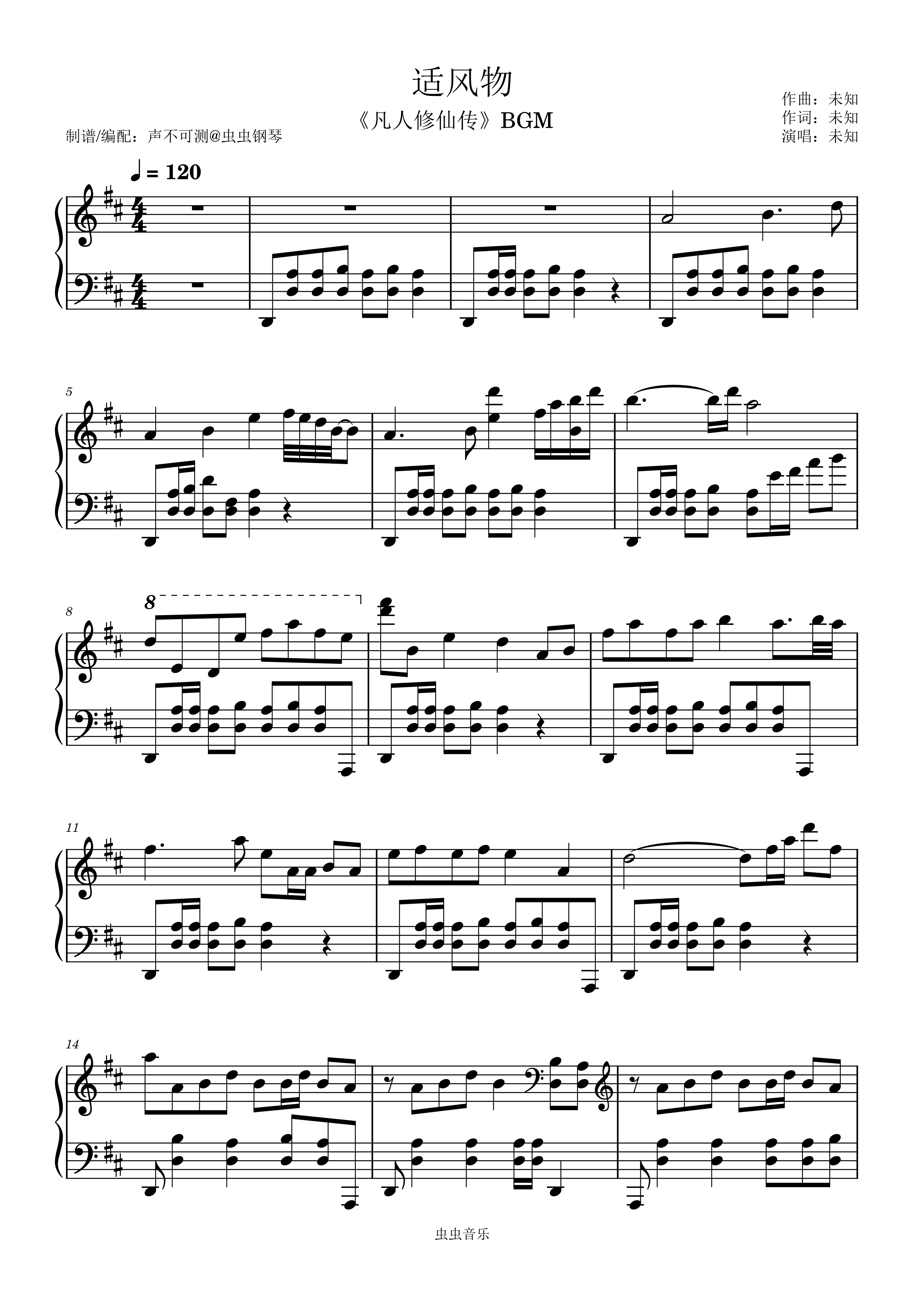 钢琴谱:适风物《凡人修仙传》BGM - 声不可测