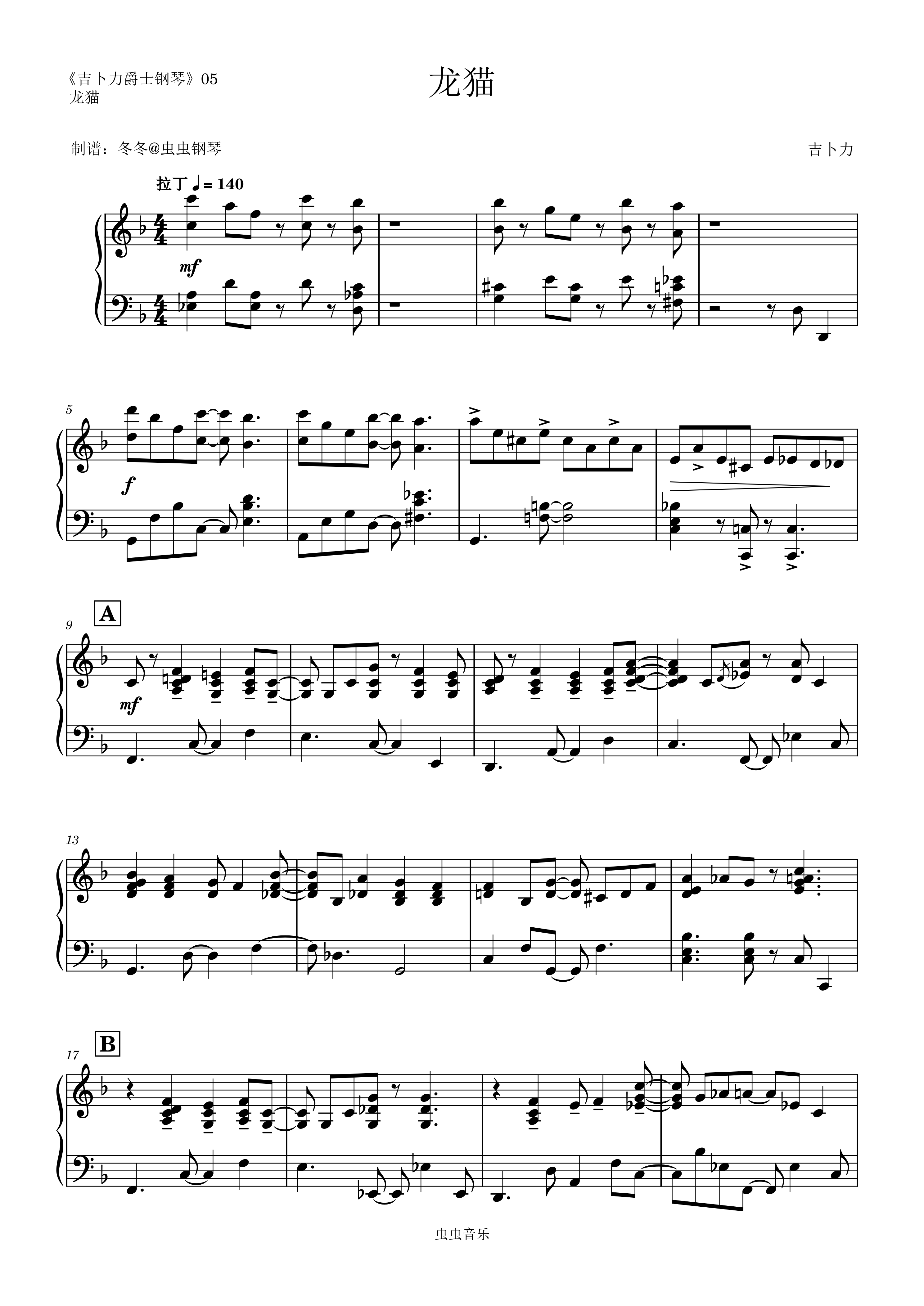 • 邻家的龙猫钢琴简谱 F调 数字双手
