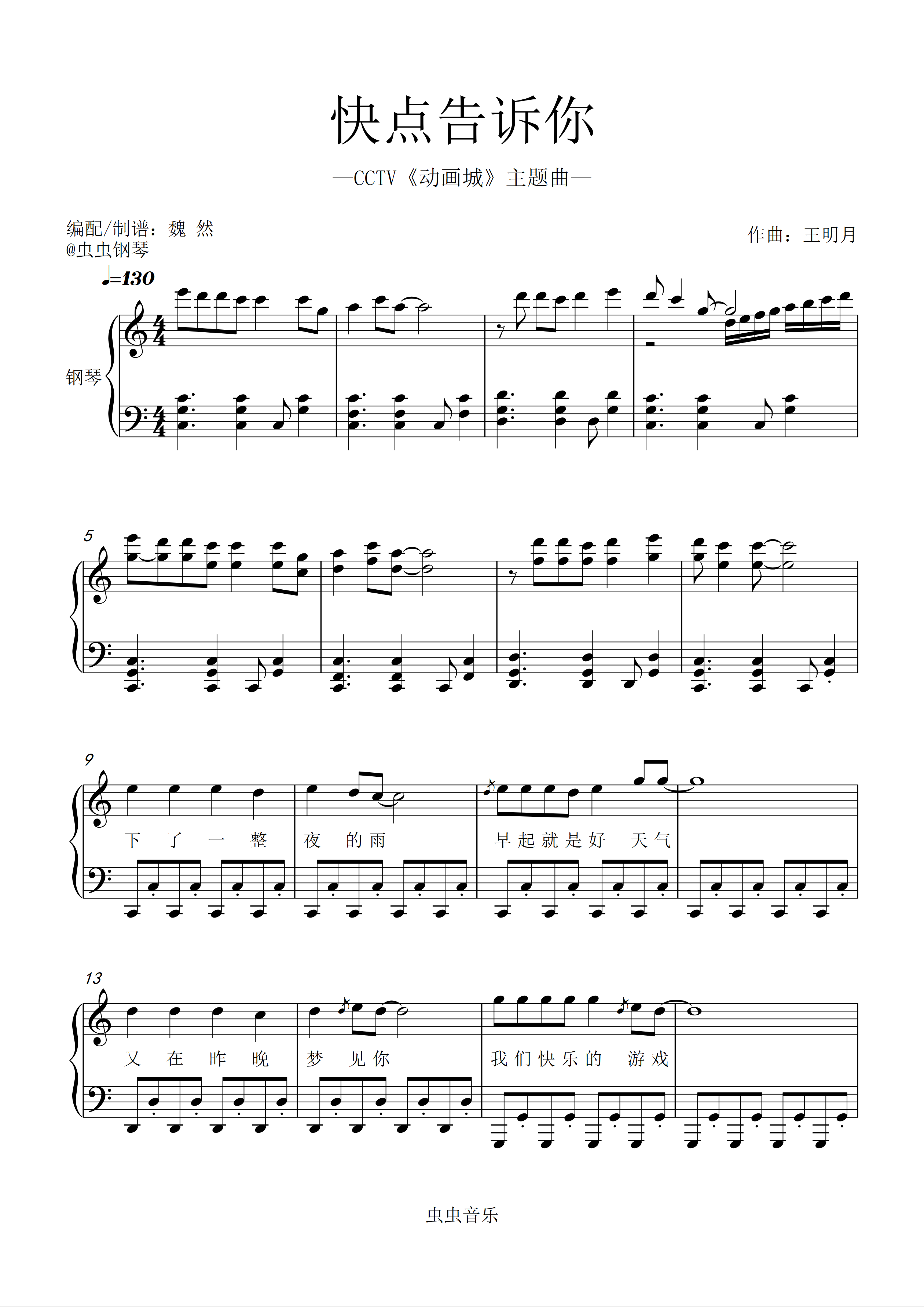 钢琴谱:【动画城】《快点告诉你》C调版——『忧伤歌声』