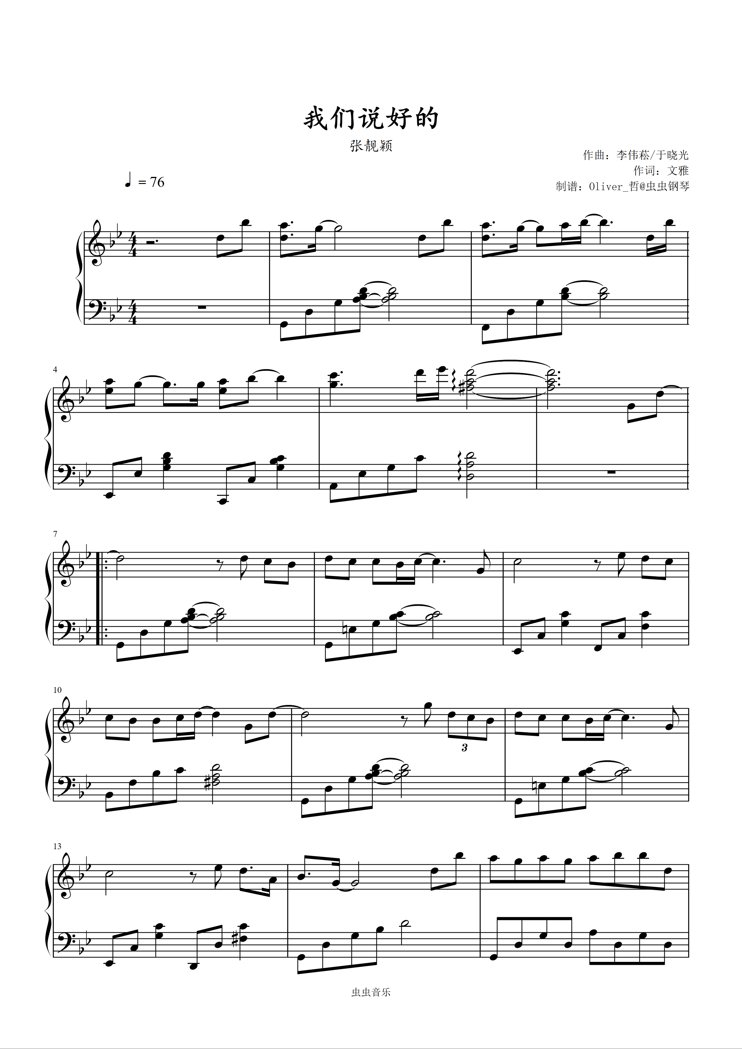 钢琴谱:我们说好的-张靓颖 原调精编简易版 经典怀旧 好听易弹