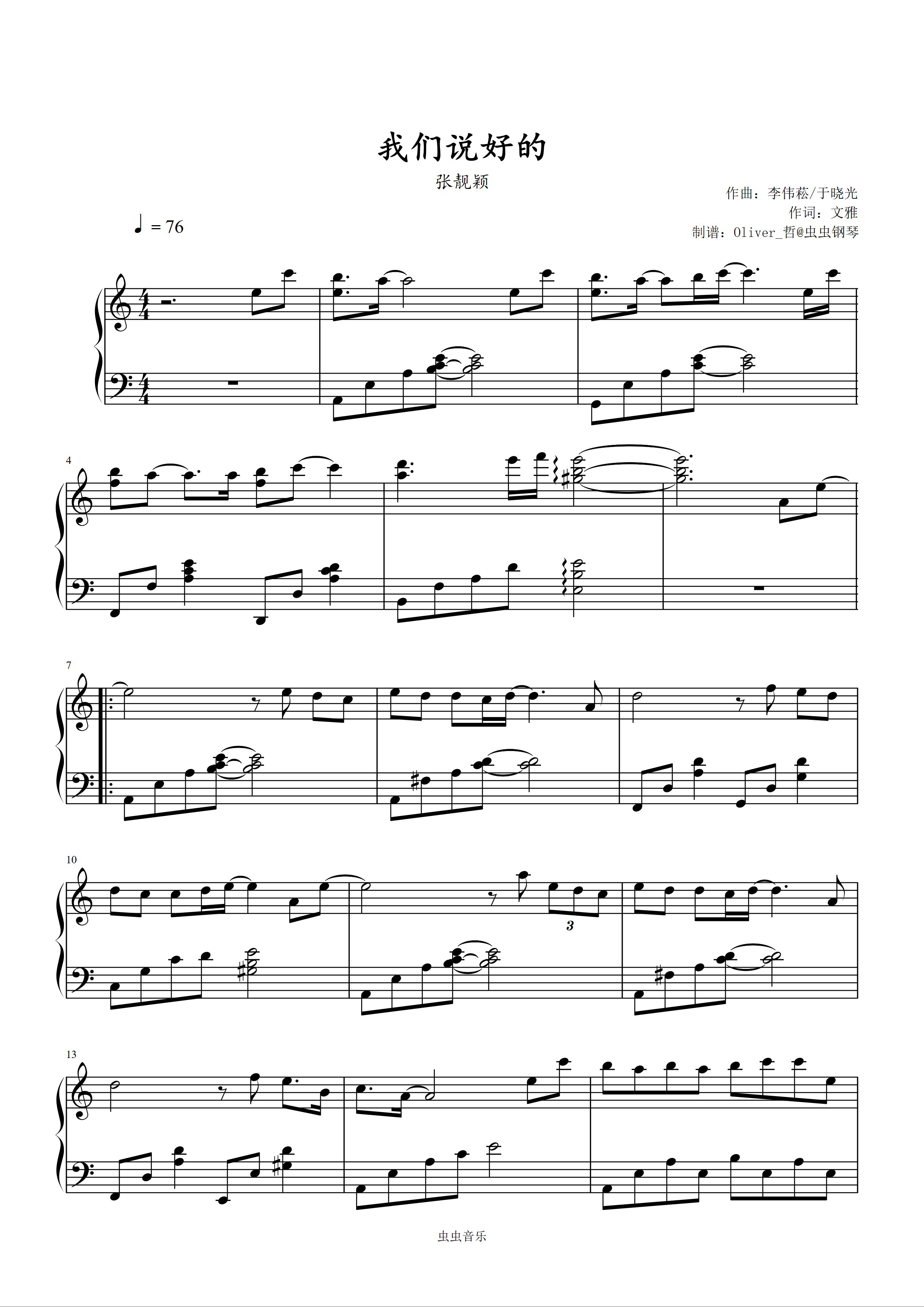 钢琴谱:我们说好的-张靓颖 C调精编简易版 经典怀旧 好听易弹