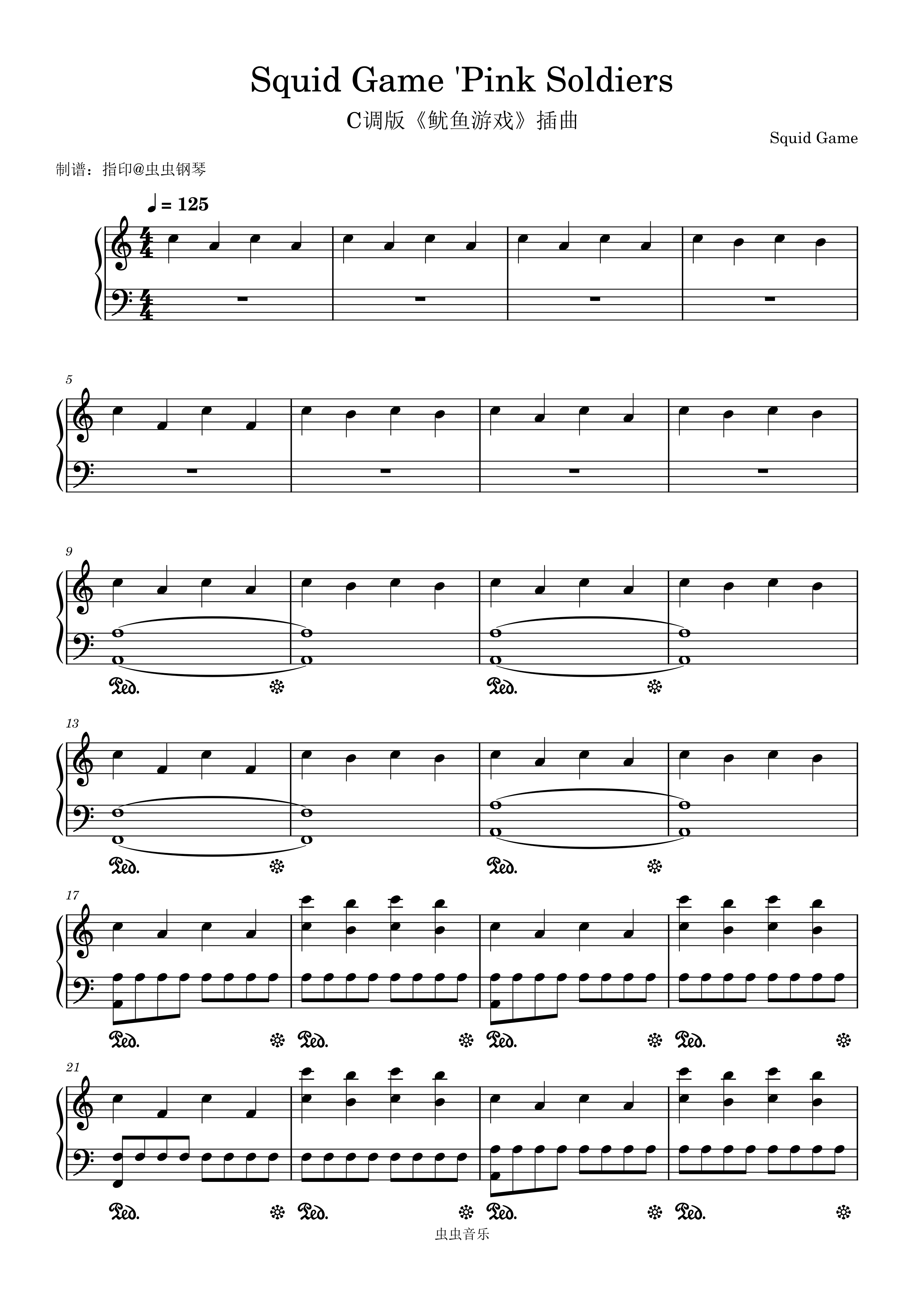 钢琴谱:C调版韩剧《鱿鱼游戏BGM插曲Squid Game 'Pink Soldiers》