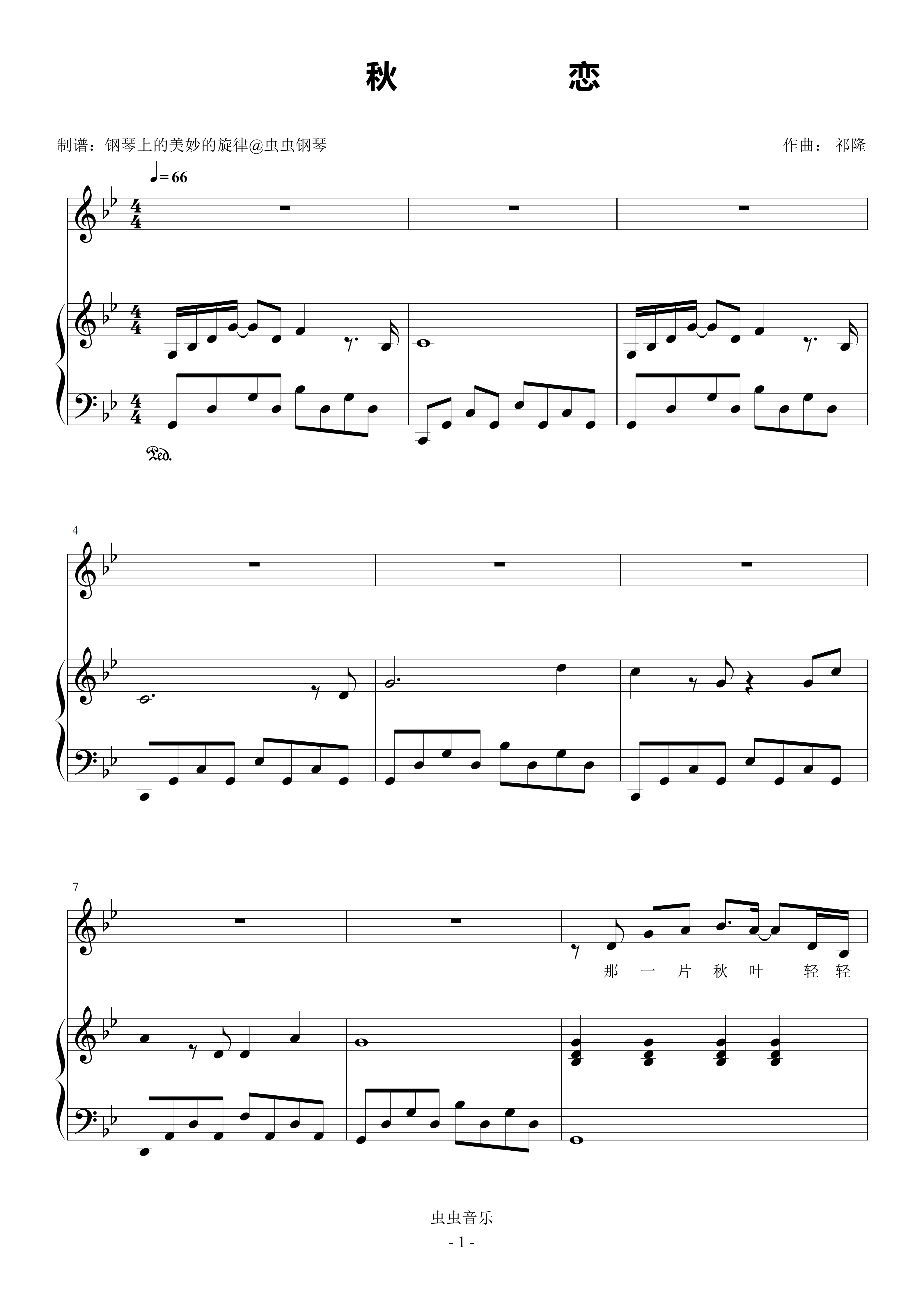 • 秋恋钢琴简谱 Bb调 数字双手 祁隆