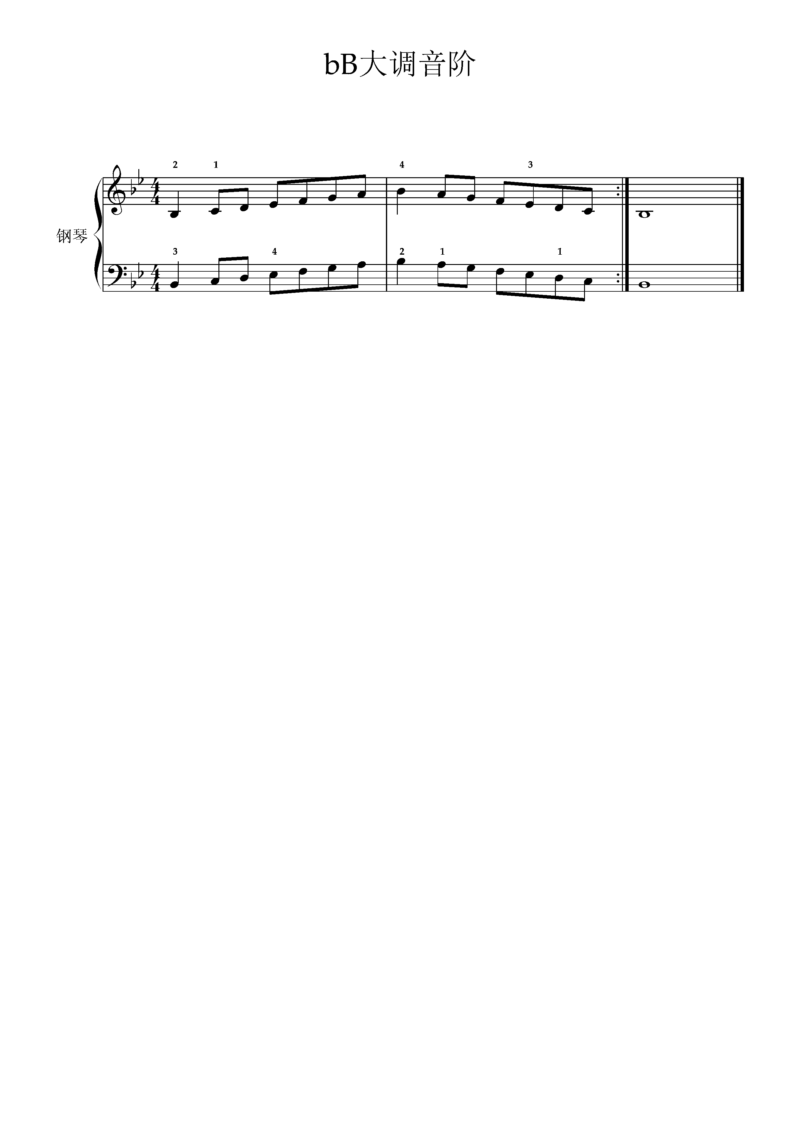 • 降B大调音阶钢琴简谱 Bb调 数字双手