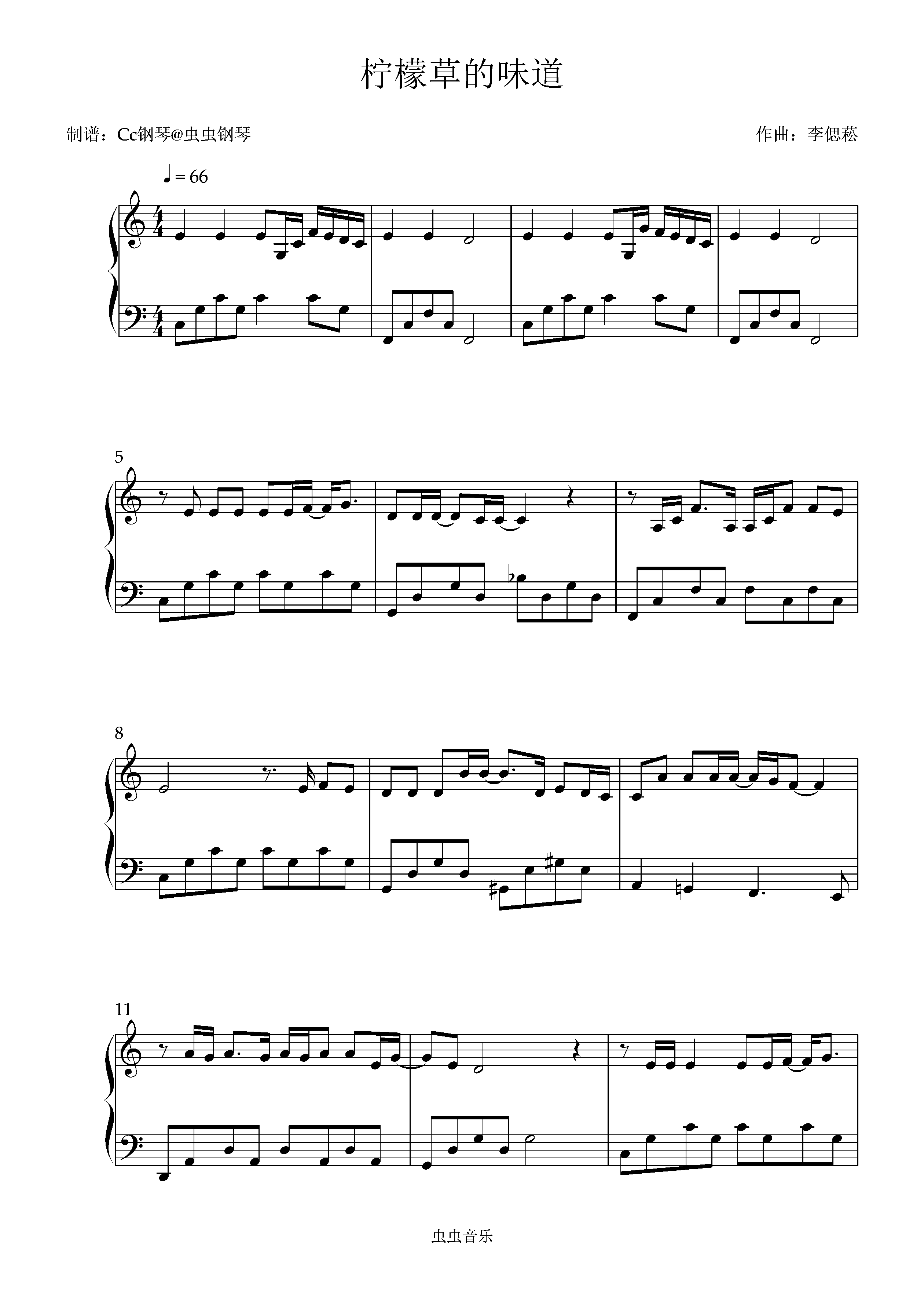 钢琴谱:柠檬草的味道 C调 好听易上手