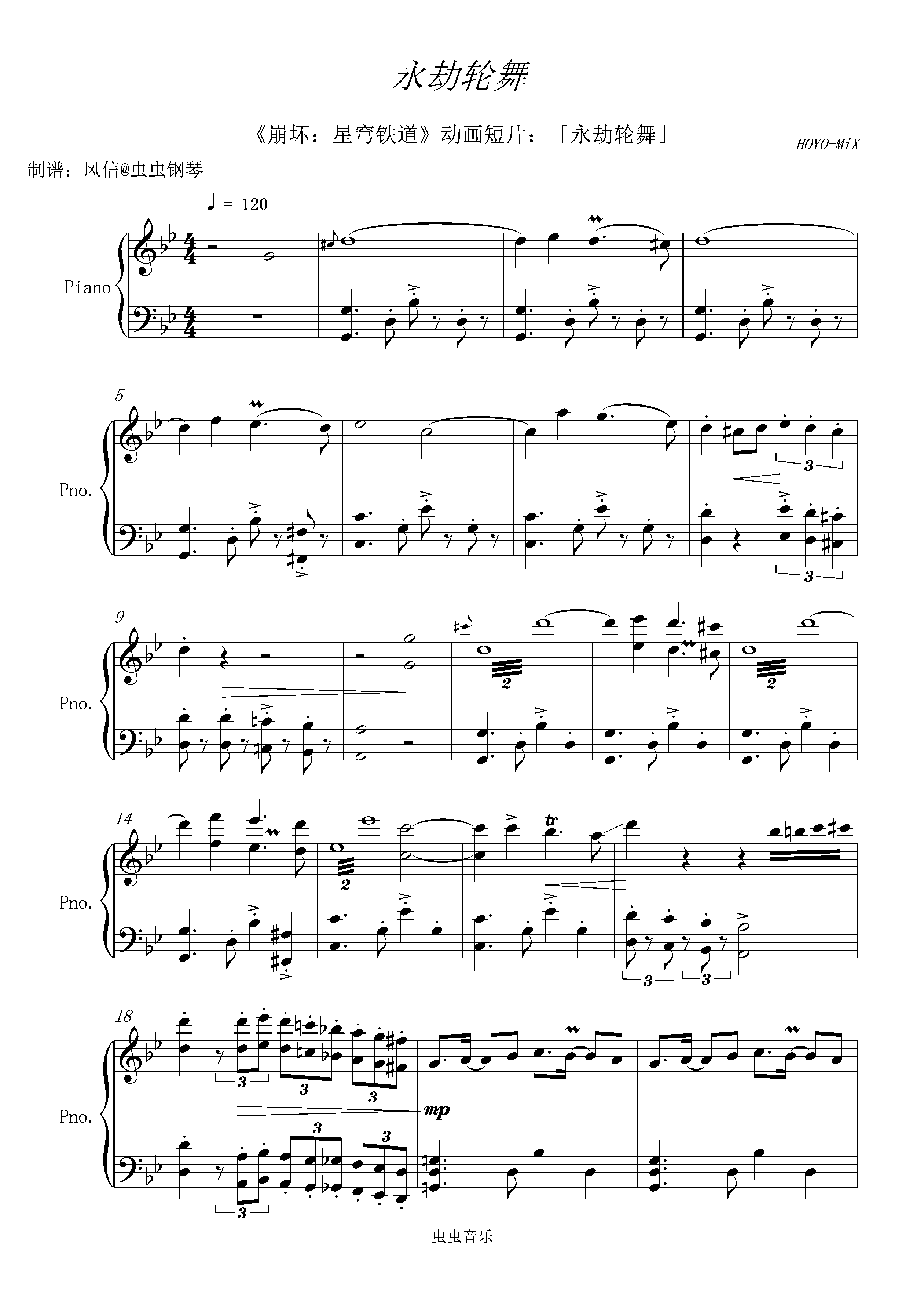 钢琴谱:《崩坏:星穹铁道》动画短片:「永劫轮舞」