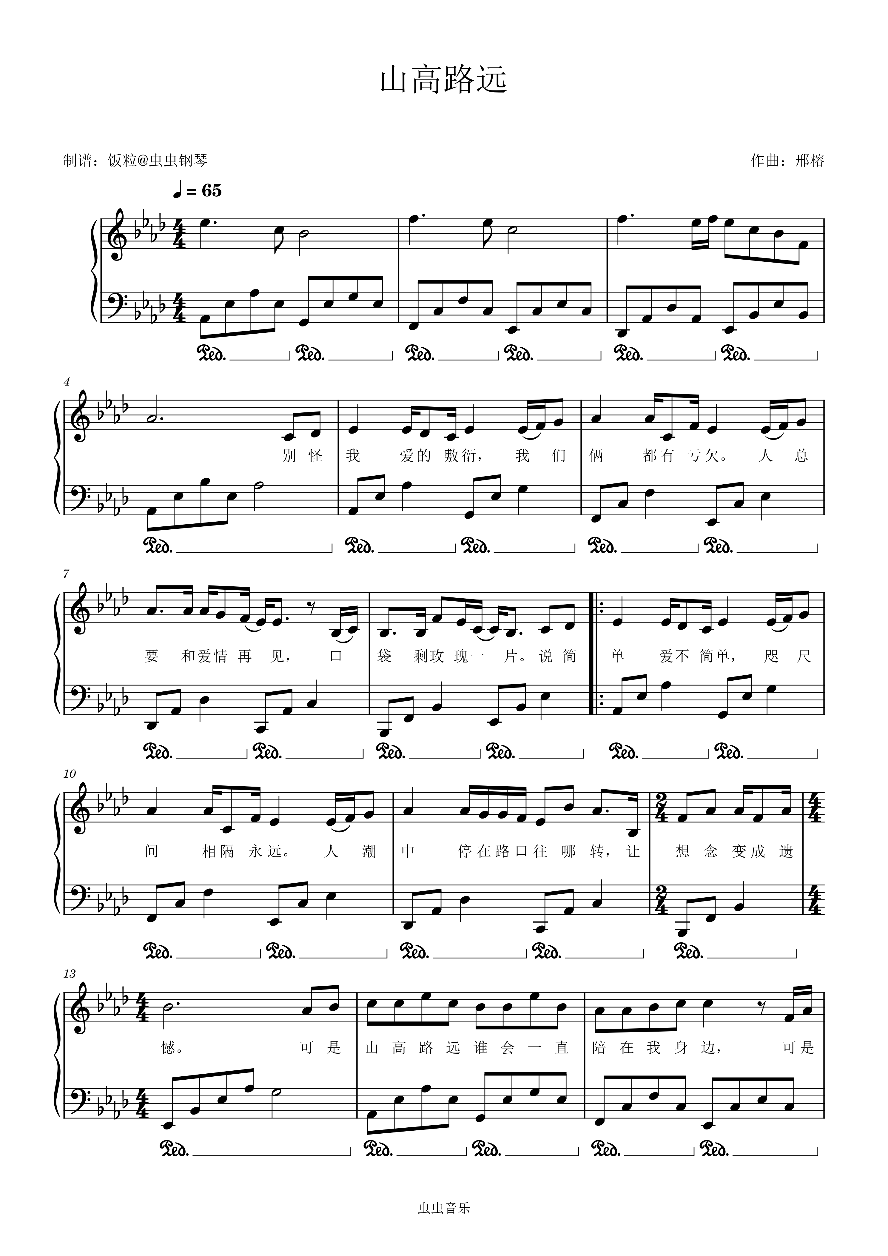 钢琴谱:山高路远(原调简单版)