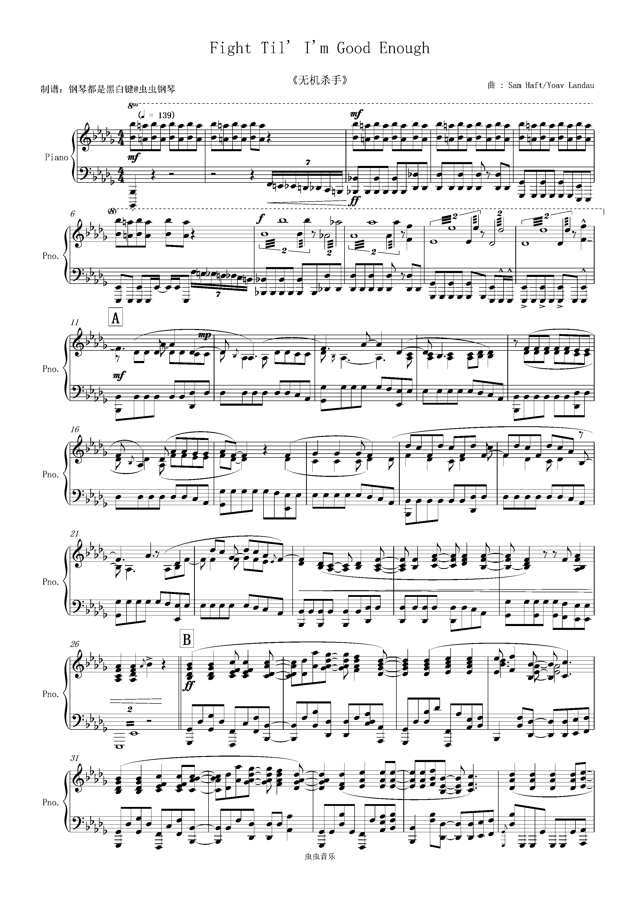 钢琴谱:《无机杀手》Fight Til I'm Good Enough【超好听演奏版】