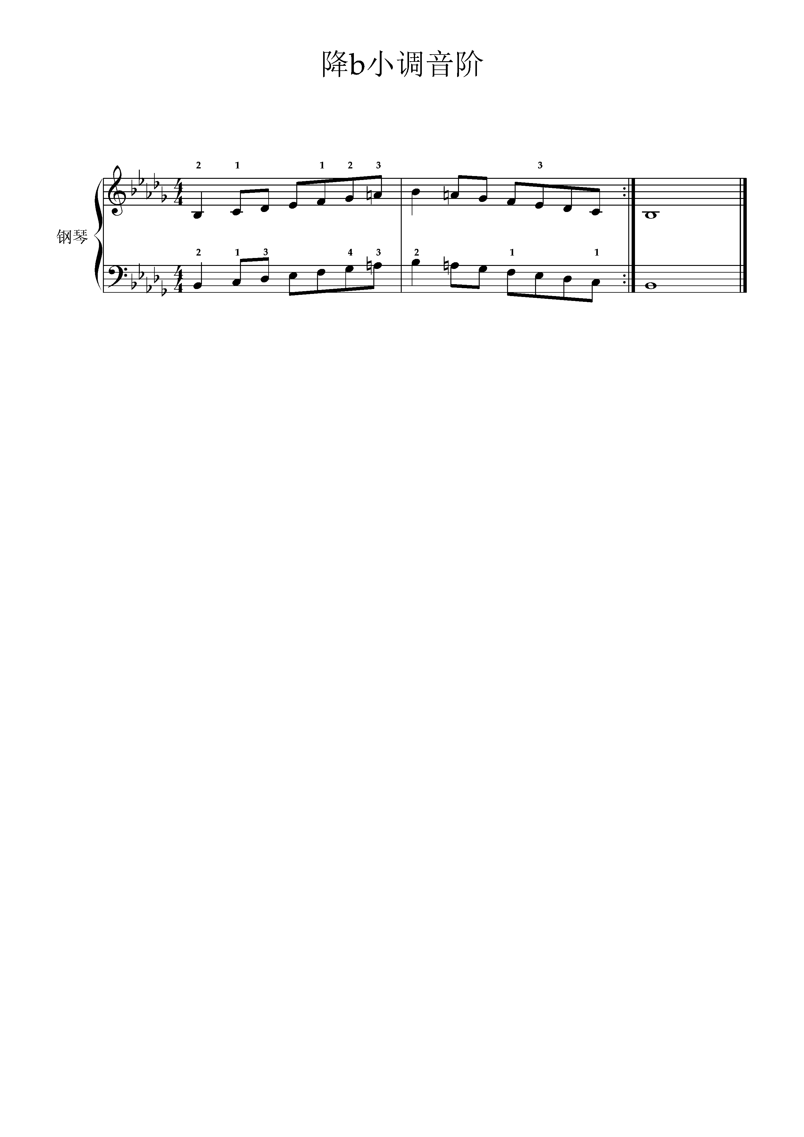 • 8级-26-降b小调音阶钢琴简谱 c调 数字双手