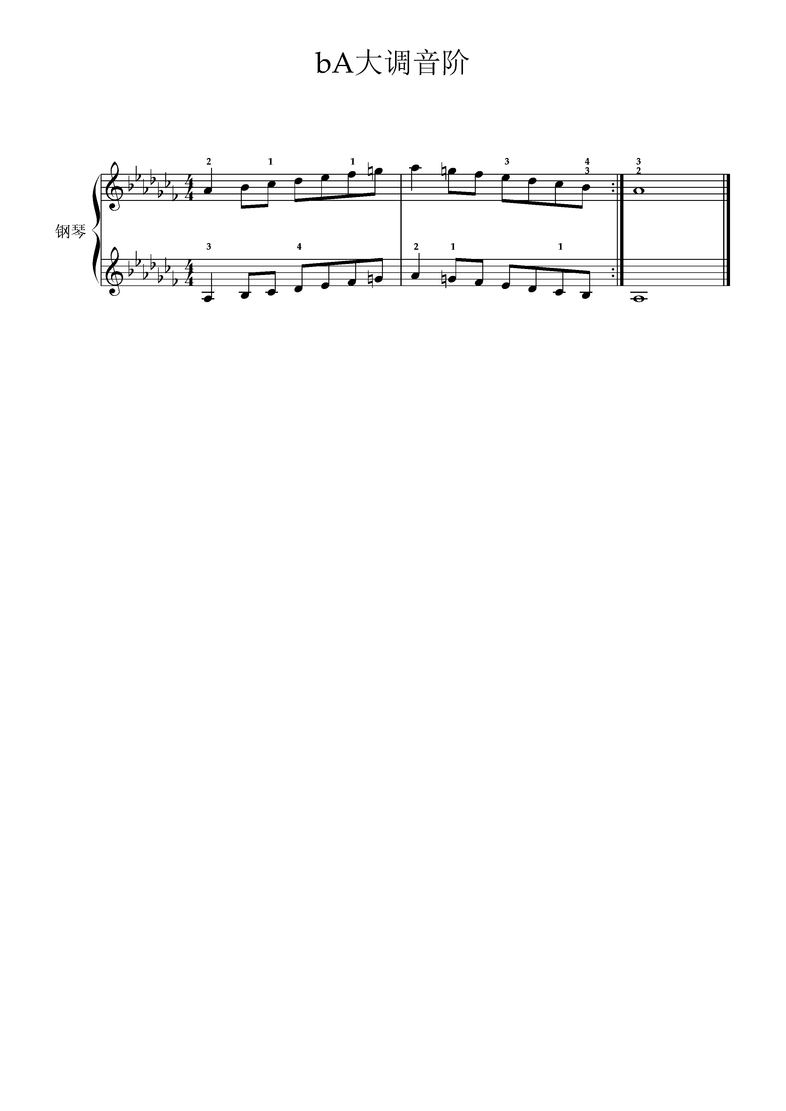 钢琴谱:大调和小调音阶-20.降a小调音阶