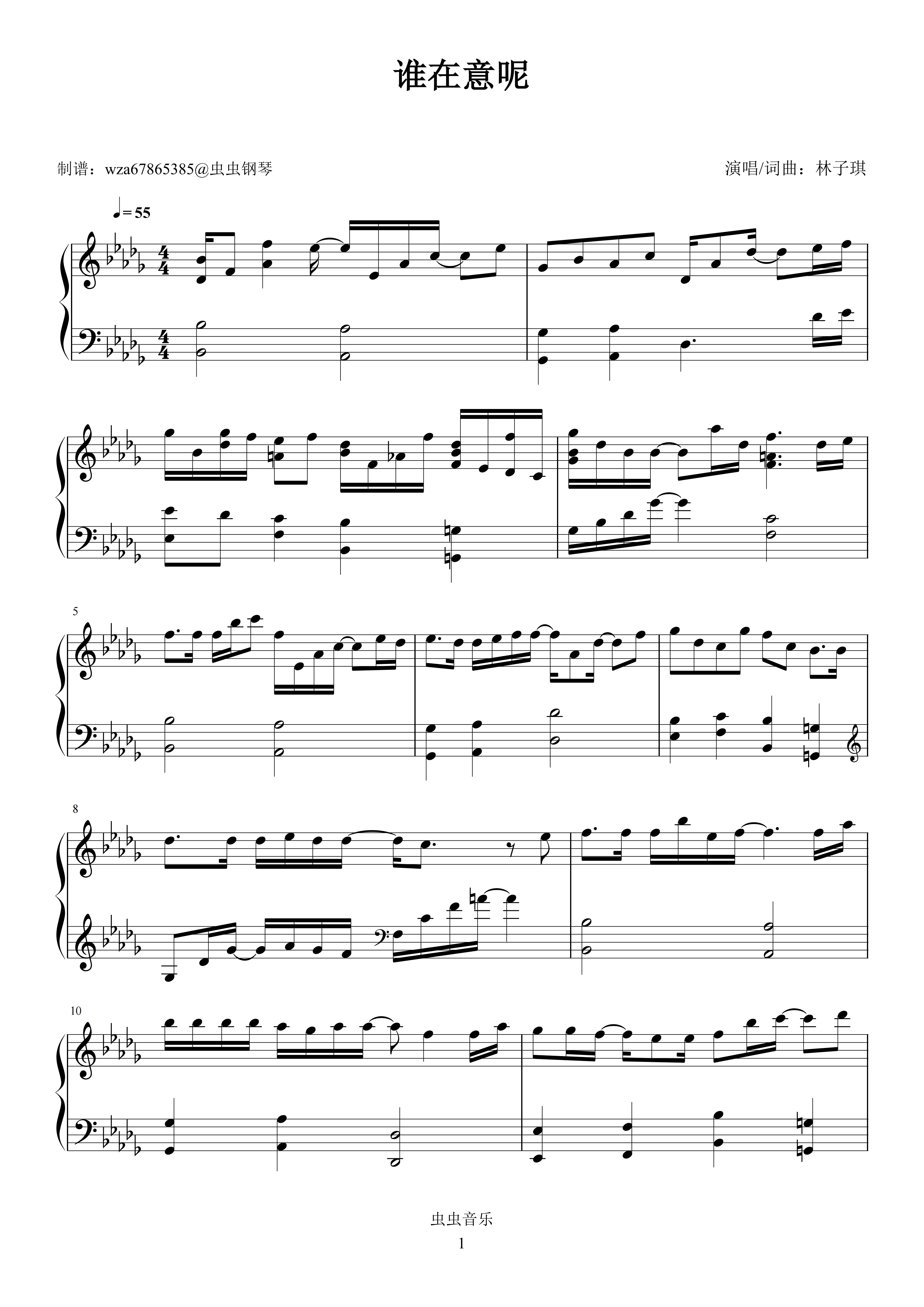 • 谁钢琴简谱 Bb调 数字双手 廖俊涛