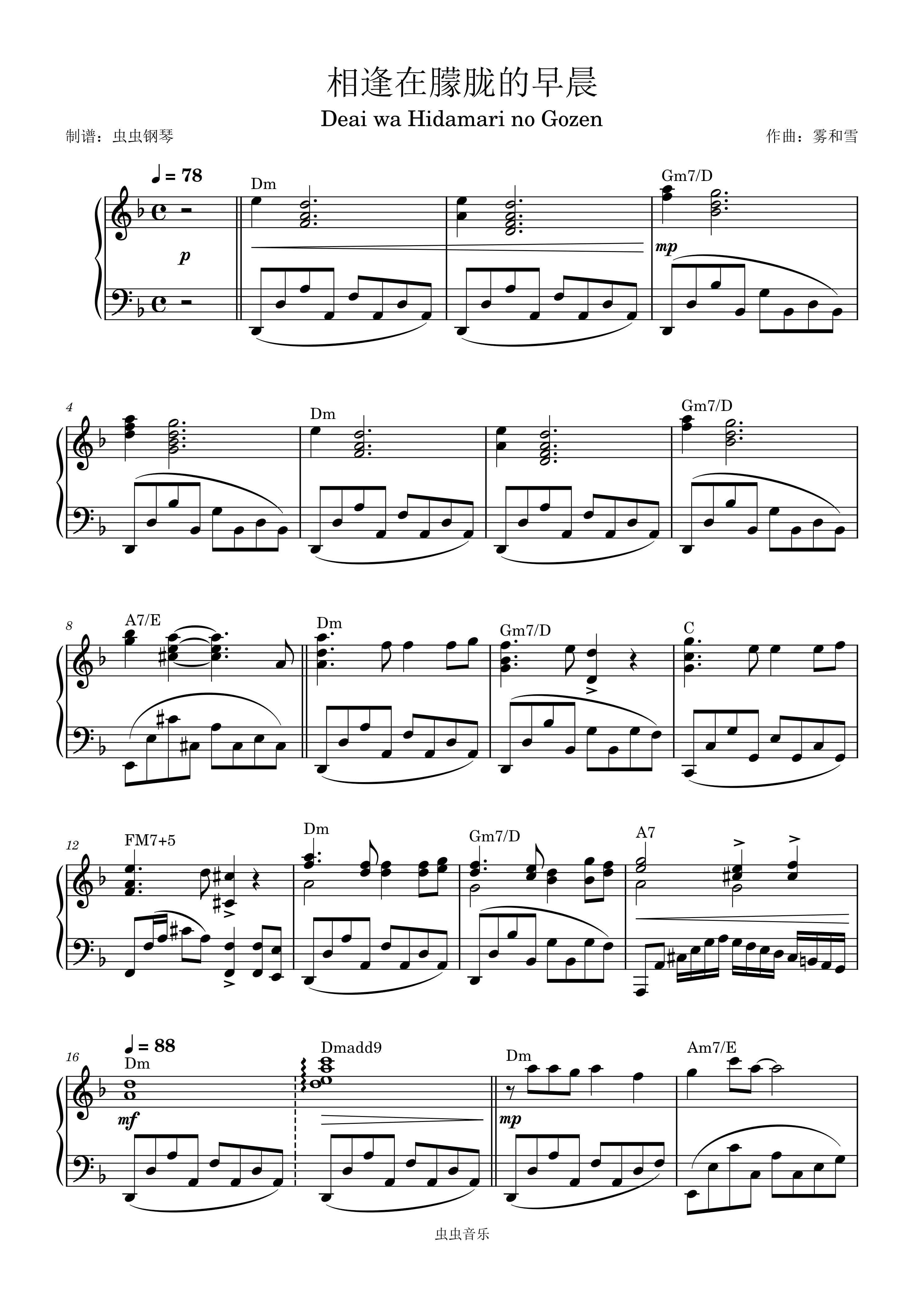 钢琴谱:雾和雪-相逢在朦胧的早晨