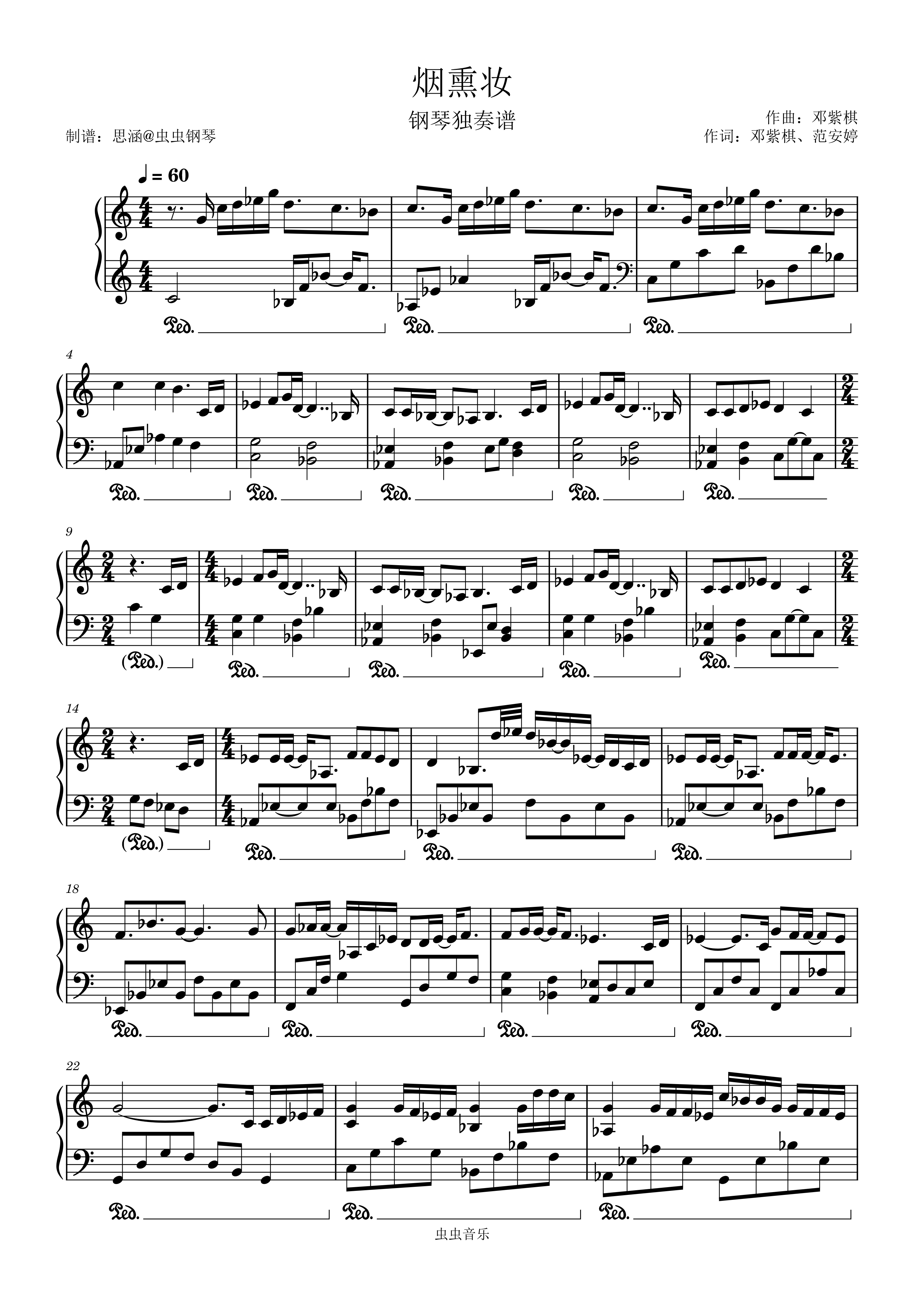 • 烟熏妆钢琴简谱 多调 数字双手 G.E.M. 邓紫棋/Aniefann