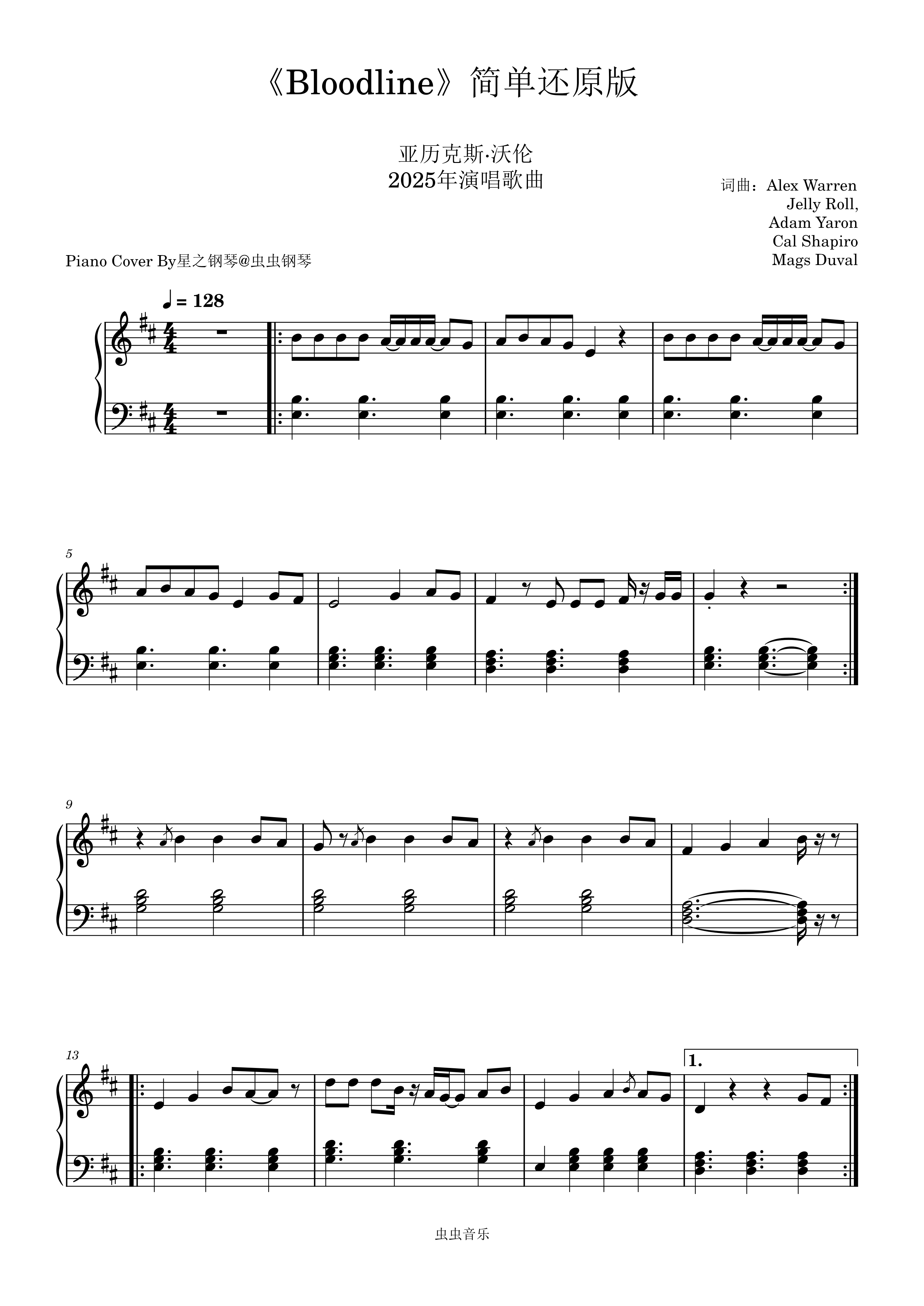 Bloodline钢琴简谱 数字双手 Alex Warren、Adam Yaron、Cal Shapiro、Jason Deford、Mags Duva