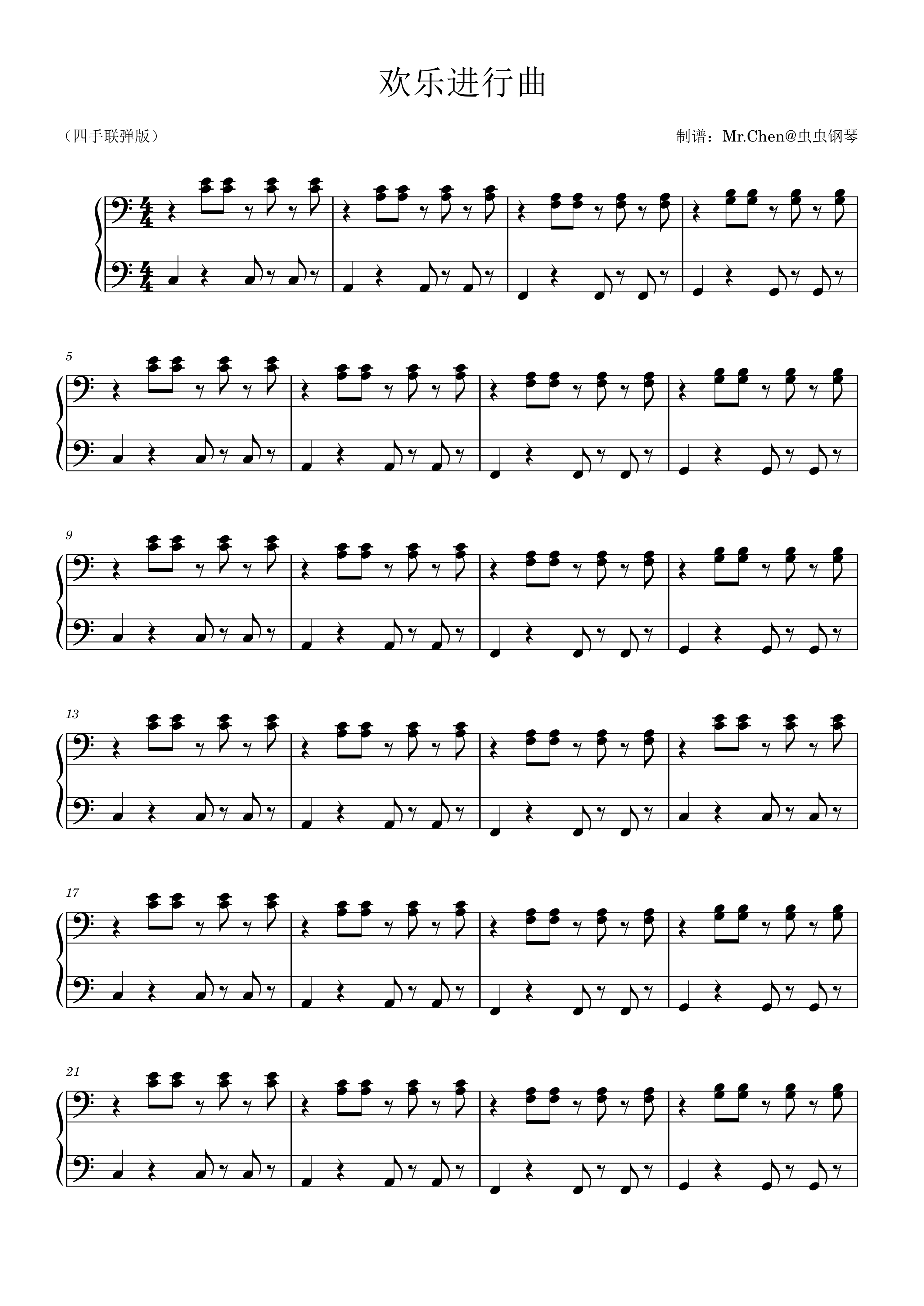 • 欢乐进行曲钢琴简谱 C调 数字双手