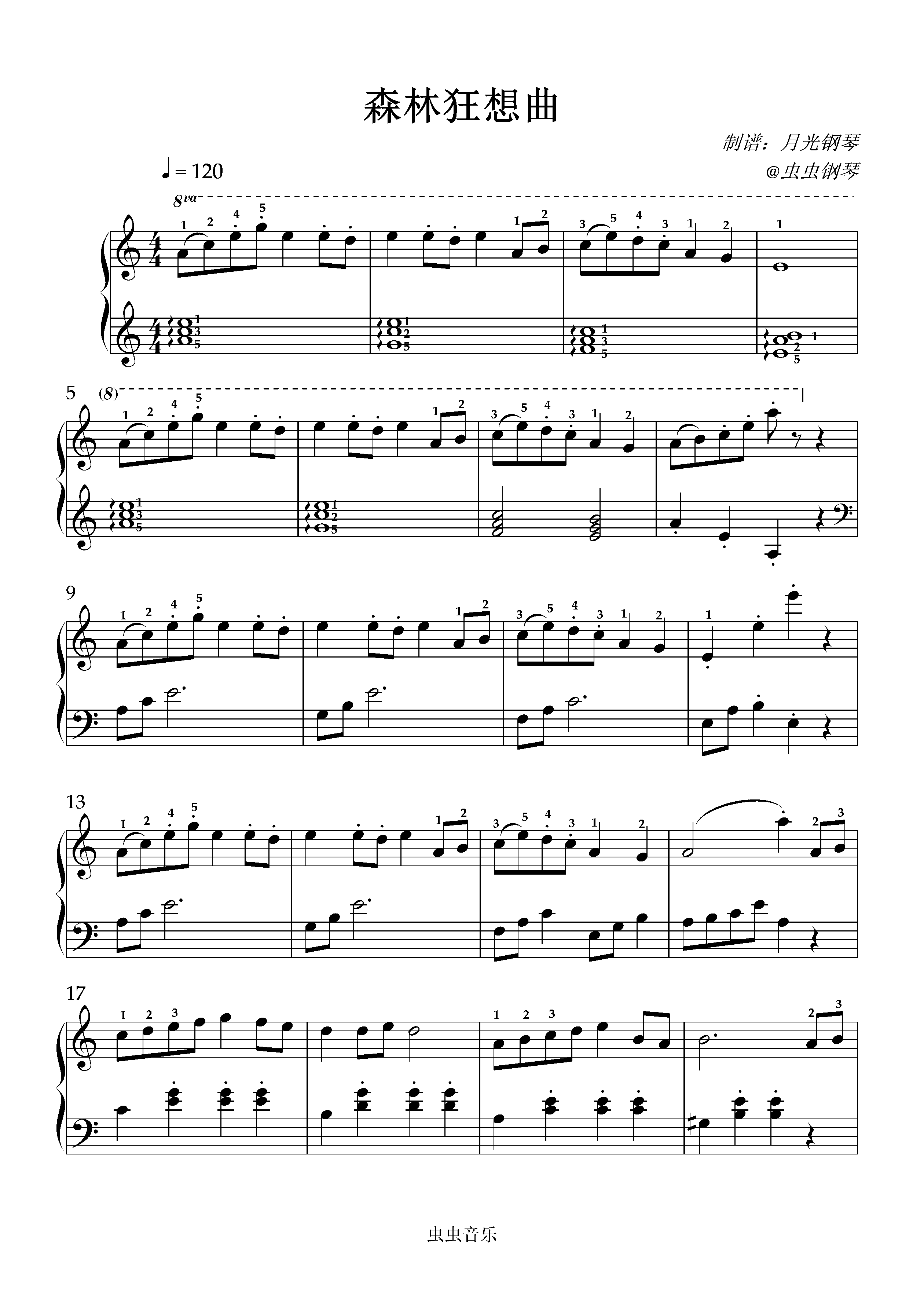 • 森林狂想曲钢琴简谱 a调 数字双手