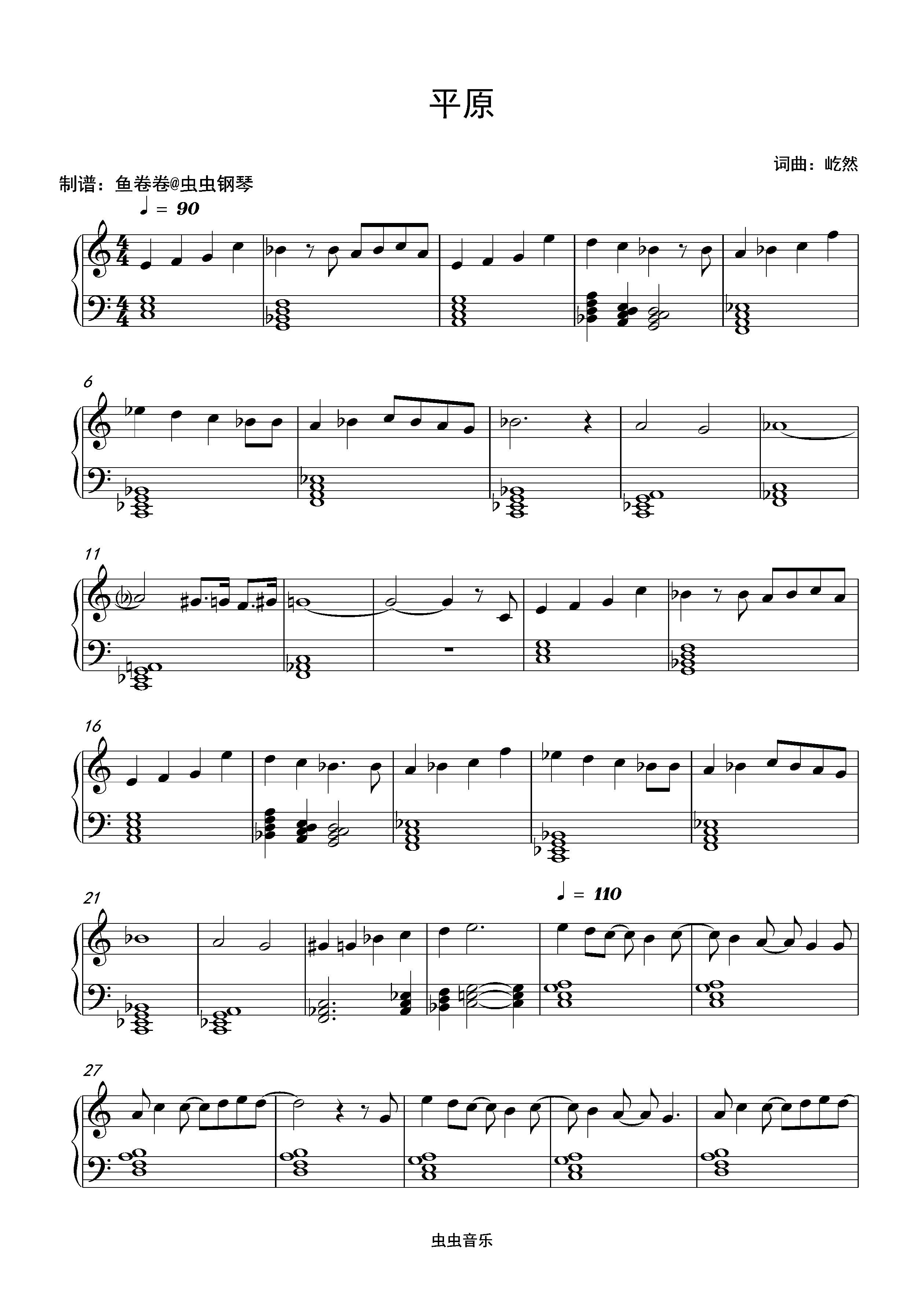 平原-缺省 C调钢琴谱