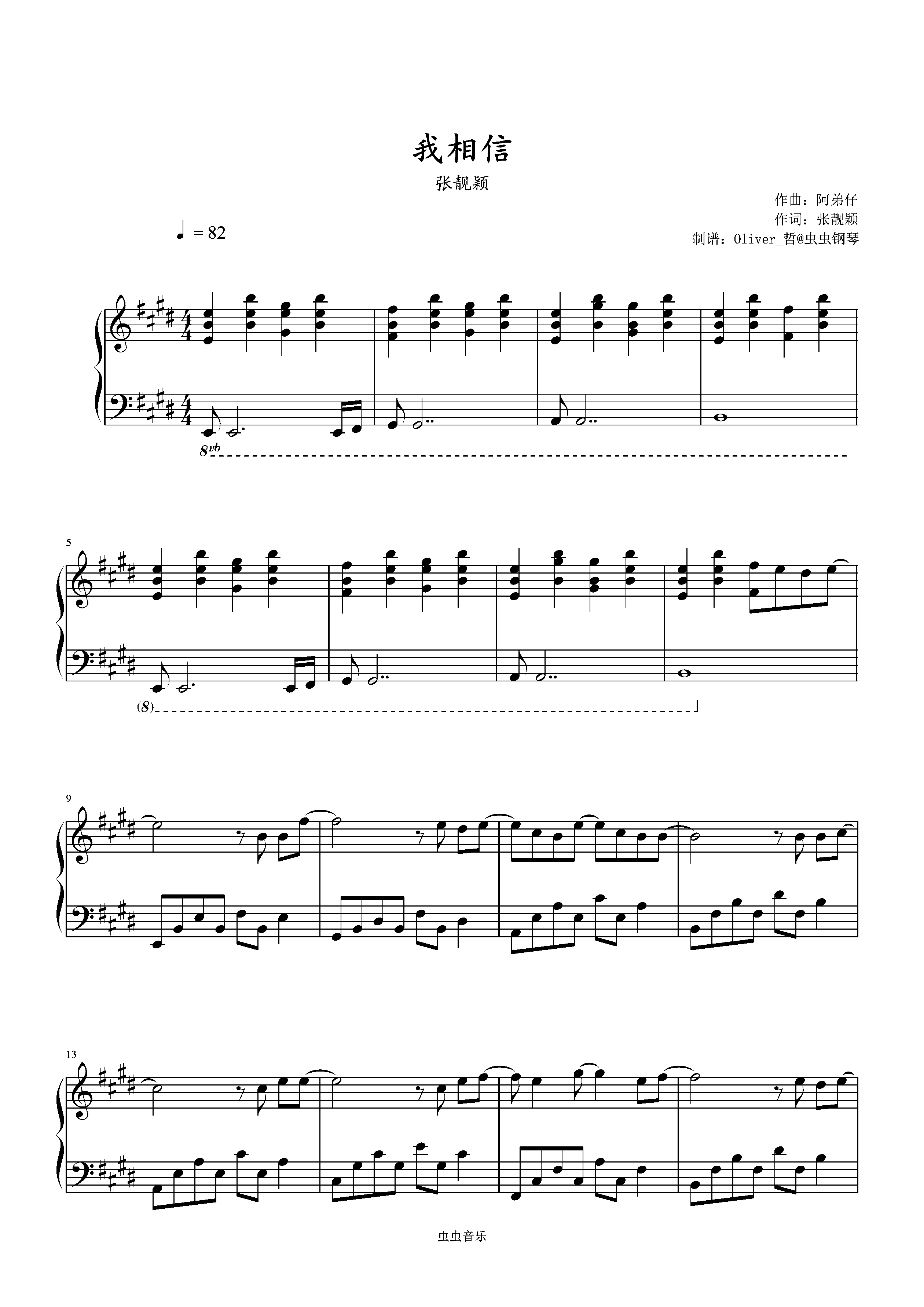 钢琴谱:我相信-张靓颖 原调精编简易版 经典怀旧 好听易弹