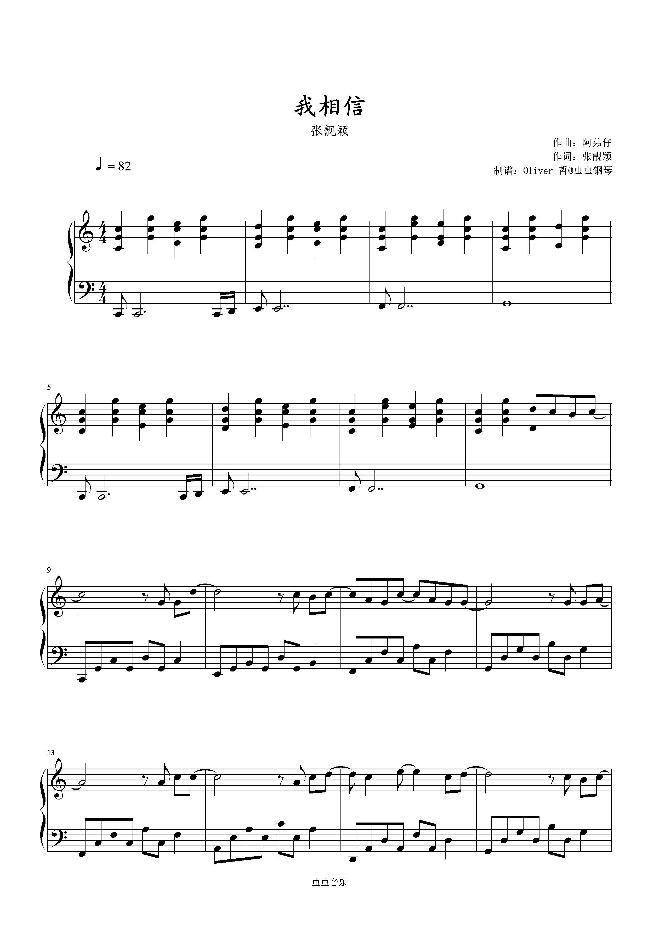 钢琴谱:我相信-张靓颖 C调精编简易版 经典怀旧 好听易弹