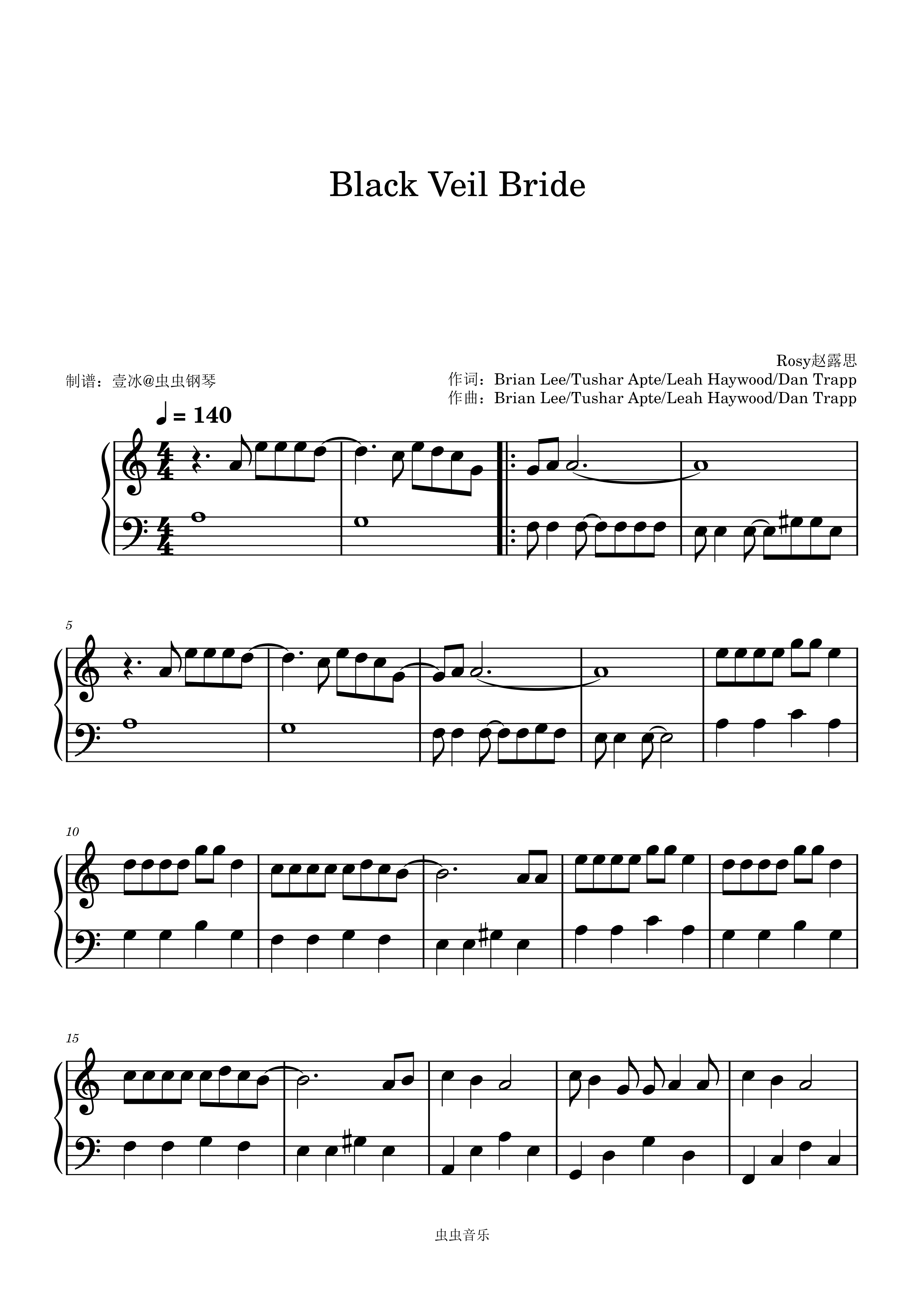 钢琴谱:Black Veil Bride - Rosy赵露思 C调